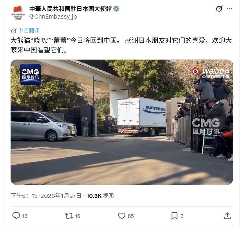 中国驻日大使馆:欢迎日本朋友来中国看大熊猫晓晓和蕾蕾热点观点