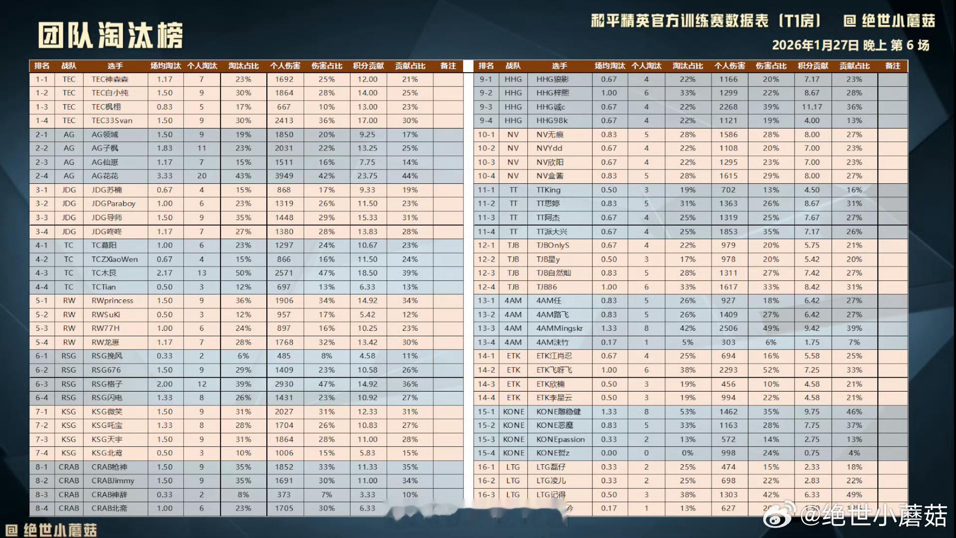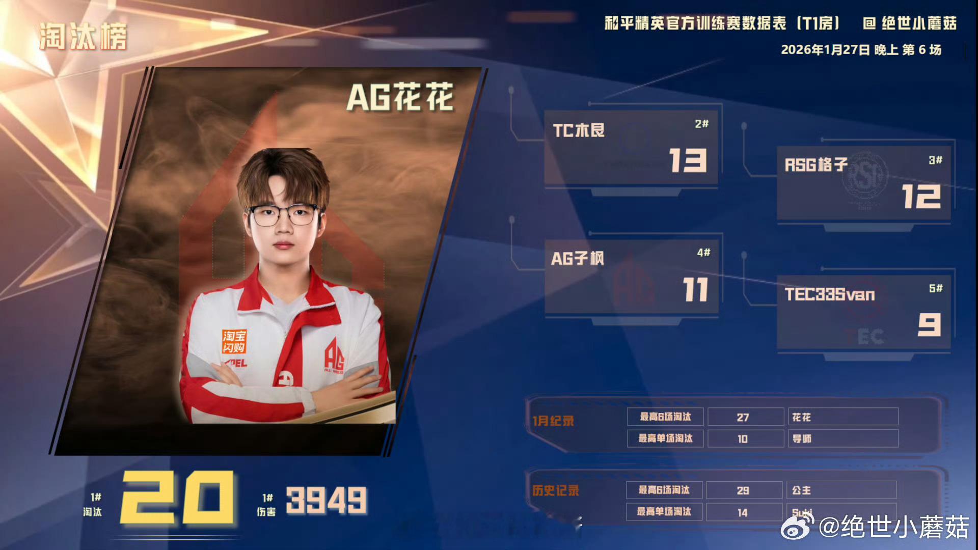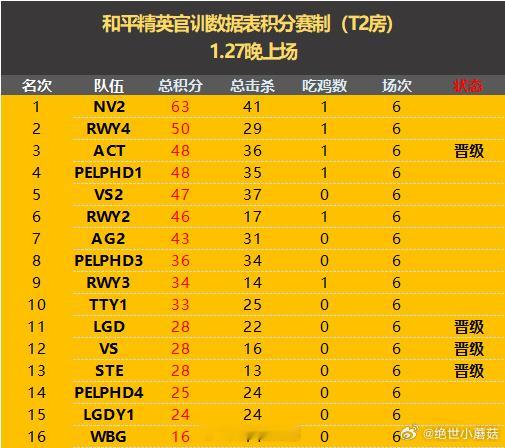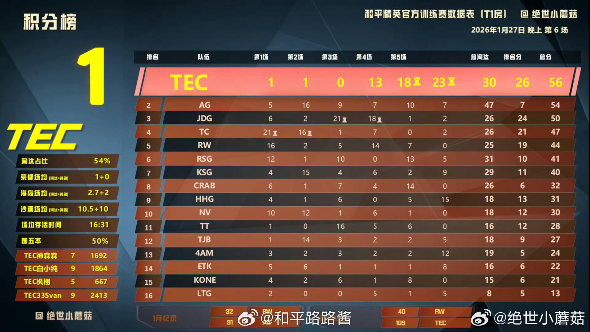0127晚上训练赛战报晚场战神TEC?恭喜获得积分榜首拿下淘汰榜一2026pel
