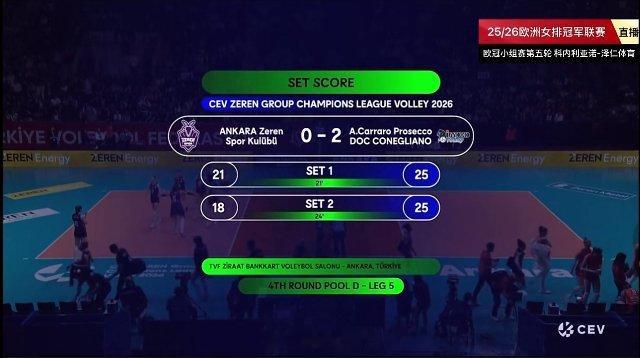 欧冠小组赛,泽仁体育vs科内利亚诺,科内25比18再取胜第二局,这一局发球也起来了,再加上拦网和哈克的进攻,在卢比安的发球轮就早早领先,朱婷在后排又换下场休息,但是到了前排还是被换回来,桑塔雷利还是很谨慎!继续加油,争取早点结束,大家可以早点休息!朱婷朱婷排球
