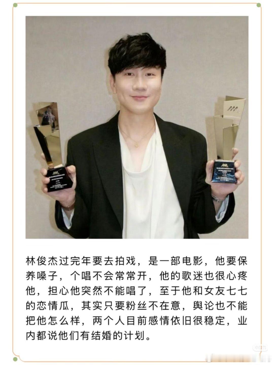 网传林俊杰过完年要去拍电影了,他和女友七七感情丝毫没受到外界影响,两人是奔着结婚去的。