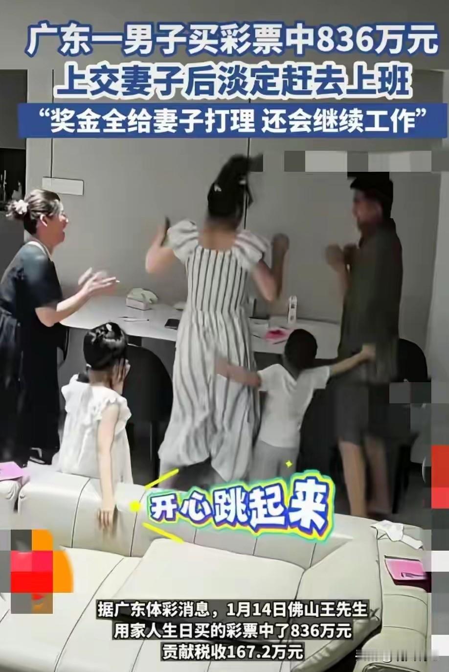 这才是活出人间清醒,中彩800万,奖金转身交老婆,淡定去上班,这事件真的太诡异了,一经媒体爆出,热评顷刻冲上,有网友热讽,最狂躁的当属女同胞了,留言几乎雷同,为何不是自己男人,自己男人又能做到这样吗! 近日广东佛山一男子,用家人生日号码,购的超级大乐透彩票,意外中彩计800万,兑彩奖金拿回家交给老婆,然后转身谈定上班。遇事不卑不亢,网友纷纷热议,这才是男人该有样子,备受关注的并非中大奖事件本身,而是中大彩,男子身上表现出的“临危不惧”的处事风格诚然难得可贵。 这并非是一般人所能做到的人间清醒,不是爆出中彩🈶全家逃遁的,中大彩导致妻离子散的,更有甚者中大彩沉沦的,可这个男自确实活出人间通透,该做什么还是一如既往,不以物喜不以物悲,真正诠释遇大事该有的样子。人本来理应这样,无论是男人还是女人,面临飞来的“横祸”,保持常态的行事风格确实值得赞许,也是每个人必须应有的样子。