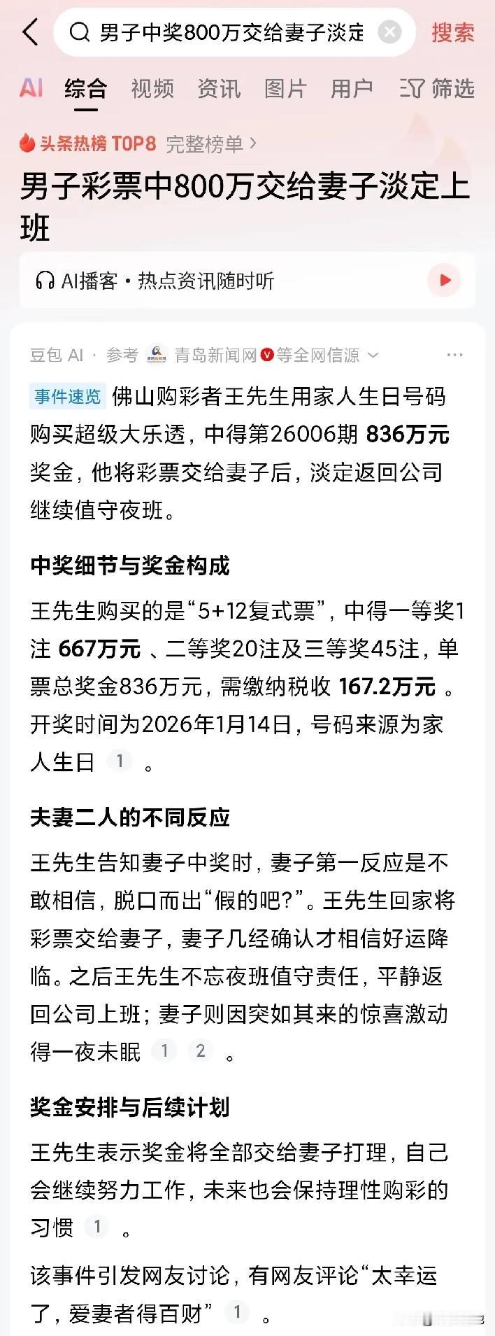 这才是活出人间清醒,中彩800万,奖金转身交老婆,淡定去上班,这事件真的太诡异了