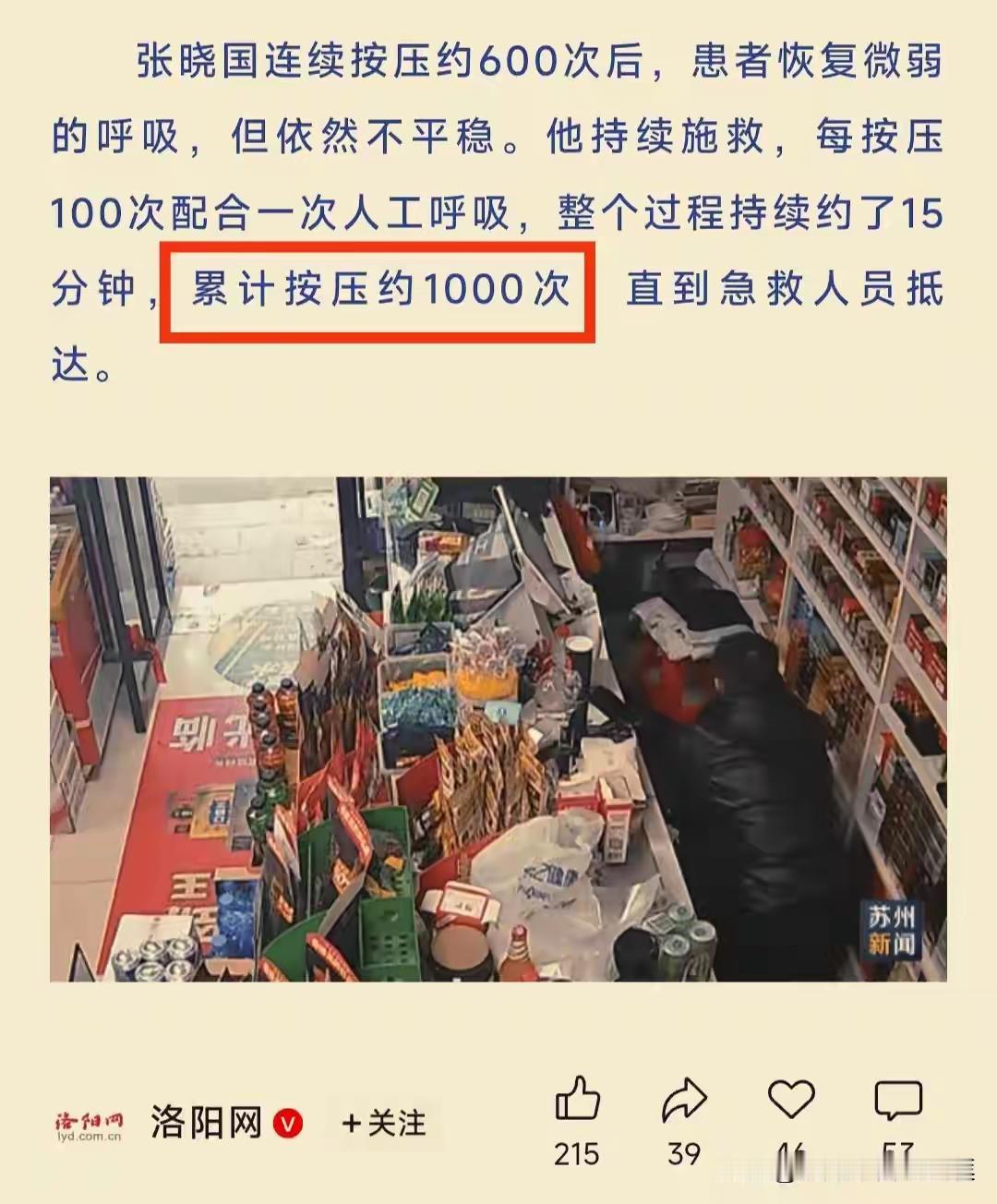 震撼!深圳小伙奋不顾身救人,按断6根肋骨只为一线生机,感动网友泪奔! (来源:央视新闻) 在这个快节奏的社会里,英雄的故事总能触动人心。近日,一段发生在深圳的感人救援事件再次证明,危难时刻,一个普通人也能成为生命的守护天使。小伙子奋不顾身的救人行动,不仅挽救了一条宝贵的生命,更让我们深刻体会到“救人一命,胜造七级浮屠”的真谛。 事情发生在去年底的江苏苏州一家不起眼的小超市内。那天,顾客张晓国刚刚结完账,老板娘因为免了他一元零头而微笑着道别。谁曾想,这短短几秒钟的善意,却引发了一场生命的奇迹。就在张晓国转身离开时,老板娘突然晕倒在地,失去了意识。 见状,张晓国第一时间反应过来,立即拨打了120急救电话。电话那头,急救中心的调度员吴亚迅速指导他进行心肺复苏(CPR)。在这紧要关头,张晓国没有犹豫,按照指导,开始对老板娘进行胸外按压。 连续按压了600次,老板娘依然没有恢复呼吸。面对时间的紧迫,吴亚又指导他穿插进行人工呼吸。整个过程持续了数分钟,时间仿佛凝固在那一刻。直到救护车赶到现场,将老板娘送往医院抢救。 令人惊讶的是,为了确保心肺复苏的效果,小伙子在用力按压时,竟然不慎按断了老板娘的六根肋骨。这个细节让许多网友感到震惊,也引发了热烈讨论。有人担心这样的用力是否会造成伤害,但老板娘的丈夫却表示:“如果不这么用力,可能就救不回来了。她的生命比肋骨更重要。” 医生后续检查证实,老板娘的生命得以挽救,已经从危重转为平安。她的丈夫满眼感激,直言:“感谢这位小伙子,是他的勇敢和果断,才让妻子有了第二次生命。” 这起事件在网络上引发了广泛关注。许多网友纷纷留言点赞:“英雄不问出处,只问勇气!”“救人一命,胜造七级浮屠!感动中国!”更有人表示:面对危难,普通人也能成为真正的英雄,只要有一颗善良的心和果断的行动。 这件事也引发了关于急救知识的热议。有专家指出,心肺复苏(CPR)是救命的关键技能。正确的按压力度和频率,能在黄金时间内最大程度地挽救生命。值得一提的是,张晓国在救援过程中表现出的冷静与果断,成为许多人的榜样。 值得一提的是,事件中的细节也让人深思。有人关注到,小伙子在进行胸外按压时,可能会造成肋骨断裂,但他毫不犹豫,坚信“救人要紧”。这也提醒我们,面对生命的危机,正确的急救措施远比担心伤害更重要。 除了救人本身的感人故事,这起事件还引发了关于“善意”的讨论。有人说:“那一元钱的善意,唤醒了救命的勇气。”有人感慨:“一个善意的微笑,一个果断的行动,可能就改变了一个家庭的未来。” 更令人感动的是,老板娘的丈夫在接受采访时表示:“我只想说一句,感谢那位救我妻子的年轻人。你用行动诠释了什么是真正的勇敢与善良。我们一家永远不会忘记这份恩情。” 这件事也提醒我们,每个人都可能成为别人的“天使”。在日常生活中,或许我们不会每天都遇到生命的考验,但只要心存善意,勇于行动,就能在关键时刻成为别人的救命稻草。 在当今社会,英雄的定义不再局限于那些驰骋战场、身披战甲的人。它可以是一个普通的市民,一次果断的救援,一份无私的善意。正如这位深圳的小伙子,他用实际行动告诉我们:在危难时刻,只要敢于担当,就能创造奇迹。 这起事件也再次提醒我们,急救知识的普及刻不容缓。每个人都应掌握基本的心肺复苏技能,只有这样,我们才能在关键时刻,成为生命的守护者。 最后,让我们为这位勇敢的小伙子点赞,为所有在危难时刻挺身而出的普通人喝彩。希望未来,有更多的人能像他一样,用行动点亮生命的希望,用善良温暖这个世界。生命宝贵,救人一命,胜造七级浮屠! 在危难时刻,一个普通人的果断行动可以拯救生命,感动千万网友。这不仅是一场救援,更是一堂生动的生命教育课。让我们一起学习急救知识,传递善意,用行动守护每一个生命的希望!救人男孩遇难 舍身救人事迹