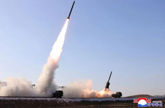 军事武器装备 【朝鲜试射更新型大口径火箭炮,4枚火箭炮弹击中发射点358.5公里外的海上目标。金正恩观摩】朝中社28日报道,朝鲜导弹总局27日进行旨在验证运用新技术的更新型大口径火箭炮武器系统效力的试射。朝鲜劳动党总书记、国务委员长金正恩观摩了试射。报道说,金正恩对试验结果表示满意。4枚火箭炮弹击中发射点358.5公里外的海上目标。金正恩说,朝鲜劳动党第九次代表大会将会阐明旨在进一步加强国家核战争遏制力的下一步构想。