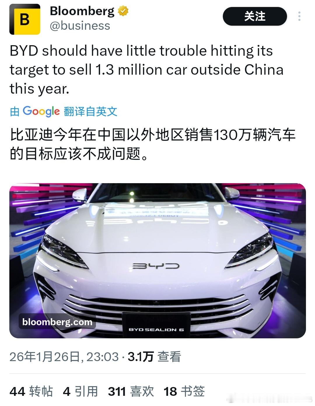 看法一致,彭博也觉得130万海外销量这个目标似乎显得太容易了