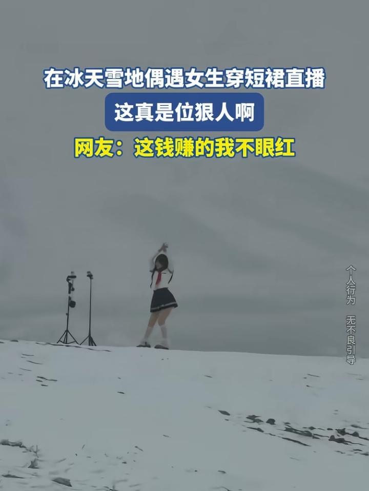 冰天雪地里,女孩穿短裙直播!这是拿命在直播啊!就问这样搞下去会不会有后遗症?