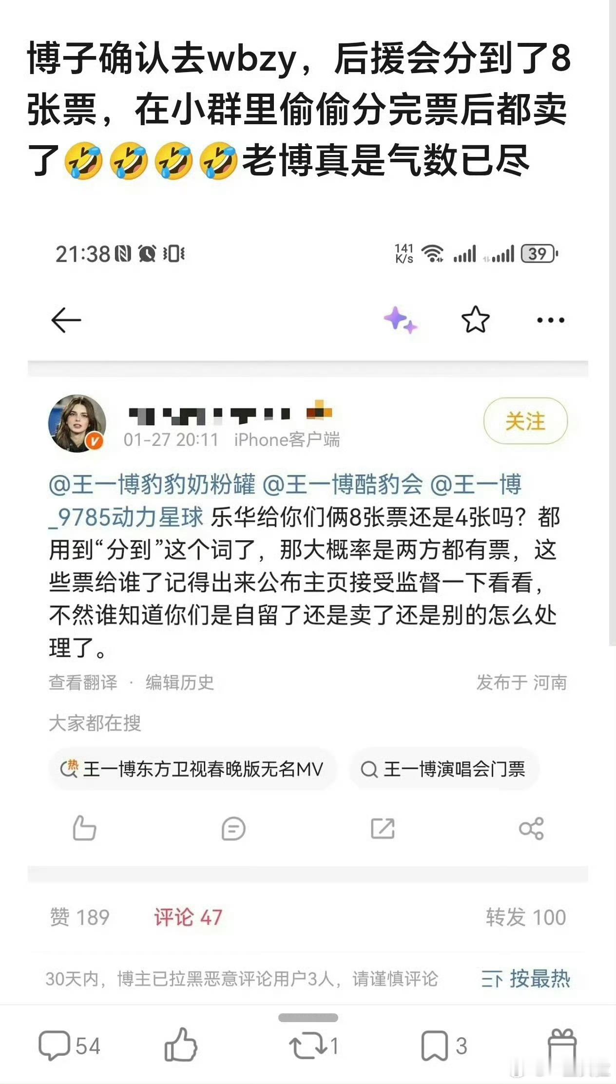 雨昕 1 2026-01-28 18:51 呵呵,少用小人之心度君子之腹。王一博从不屑拿什么分猪肉奖。博才28岁已4提影帝(华表 金鸡 长影节金鹿 澳门影视节金莲花),拿上影节媒体最关注男主角奖 凤凰最优秀男主角奖,还提金莲视帝,拿金鹰观喜金杯,作品入柏林主竞赛单元金熊提名;你家马上35岁了,一个主流奖项及提名也没有,为拿些分猪肉奖项门票,还打榜买水,气的人6.0双双不参加wbzy且发文揭露你家作假买水。就这还嘲人28岁获主流大奖无数的博帝,也是醉了。你家电影《诛仙 雕 得闲》拍三部亏三部,人正午侯总孔导说了实话赔了,还冲了人微博。嘲人一个提名影帝视帝、拿全球重量级奖项-美国电视届奥斯卡泰利小金人的气数已尽,你做梦吧哈哈。