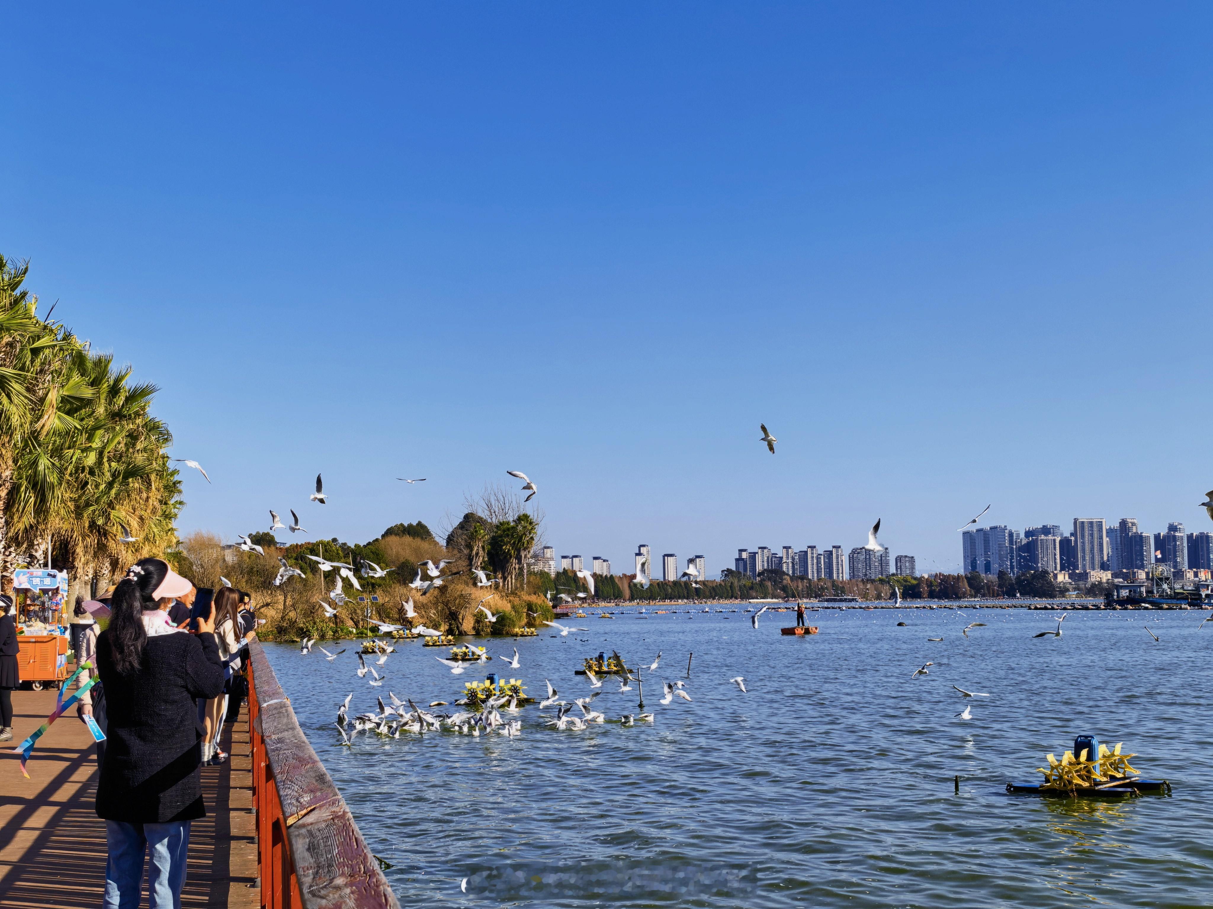 全国都在经历寒潮来袭的时候,昆明依旧蓝天白云晴空万里,太适合春节期间出行游玩了~昆明旅游碎碎念鼻祖又来逗我笑了 📍昆明的五一路。必来的市中心地点,地铁和公交都有路线可以到达。昆明必打卡的昆明老街、南屏步行街、篆新农贸市场、南亚风情园都离得不远📍海洪湿地。成片的红杉树搭配蓝天白云,湖泊就像镜子一样干净的不像话,这是冬季来才有的静谧童话📍海埂码头。滇池其实非常非常大,不愧是云南最大的淡水湖,不过滇池也把最美的部分都留在了昆明的市区,直接到达海埂码头就能看到西山公园的“睡美人”和成群海鸥飞来过冬的景象!码头还有很多卖鸽子粮的路边小贩,10块钱三包,可以试试看在海埂码头喂海鸥,看一下能不能拍到和海鸥亲密接触的那一刻,给自己带来一个好彩头吧最后,再来一顿地道的云南美食,云南菜都是以酸辣为主,就连炒海菜也会放上干辣椒炒,我都会配上一瓶蒙牛牛奶,解辣又解腻,这样就能敞开了怀品尝地道云南味! 昆明