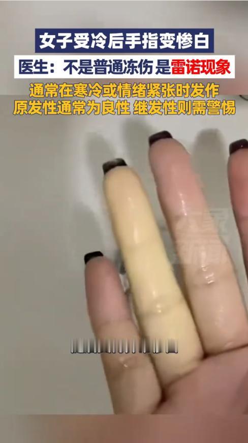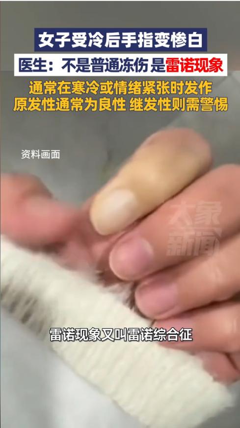 “悲剧还是发生了!”近日,浙江,一女子在室外时,穿的很少,感觉特别冷,没过一会,手指就被冻得发麻,其中一根手指变成了惨白色,毫无血色,吓得她赶紧回家用热水泡,好在最后恢复正常,就医检查为雷诺现象。 很多女孩都很爱美,进入冬天后也会穿的很少,但其实这对身体有着不可逆的损伤,长时间受凉可能影响血液循环,造成免疫力下降。 据媒体1月27日报道,进入冬季后,天气异常寒冷,尤其是早晚温差很大,这天中午陈女士出门玩时,穿的较少。到了晚上后,气温降低,寒风刺骨,冻得她瑟瑟发抖。 一会的时间,她就感觉手被冻得发麻了,于是不停地搓手,仔细一看,发现其左手的无名指竟开始发白,毫无血色,吓得她赶紧进屋泡了温水,好在一段时间后,手指又恢复正常。 就医检查后,医生表示,这不是普通的冻伤,而是雷诺现象,又叫雷诺综合征,通常在寒冷或者情绪紧张的时候发作,症状为手指或脚趾突然变白发紫,随后再恢复为红色,一般与血管异常收缩有关。 医生提醒,如果只是偶尔发作一次,通常为良性,不会影响健康,但是如果频繁发生,很有可能是风湿类疾病或者全身性疾病的早期信号,要及时就医检查,明确发病原因。 信息来源:《浙江一女子受冷后手指变惨白,医生:不是普通冻伤,是雷诺现象,通常在寒冷或情绪紧张时发作,原发性通常为良性继发性则需警惕人象主播说 》大象新闻