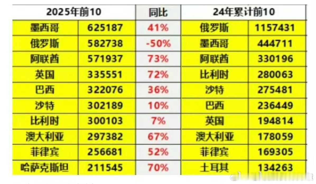 中国汽车出口第一目的国易主其实变化主要还是取决于关税中国车质量好,智能领先加上价格实惠所以去到哪都是香饽饽