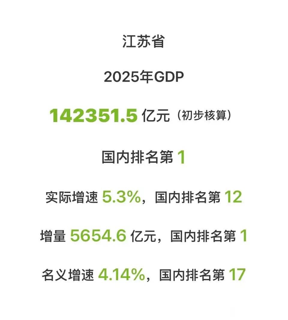 2025年GDP江苏增量5600亿,广东增量4200亿,江苏比广东多1400亿。最多给江苏两年的时间,超过广东问题不大。