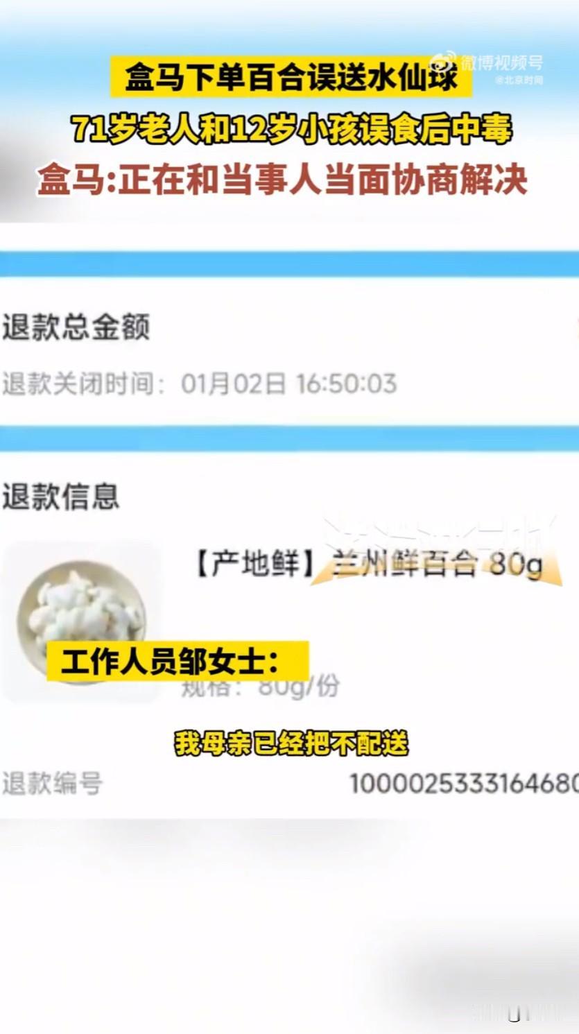 有消费者在盒马下单准备做菜的食用百合,结果收到的却是有毒的水仙球,家里71岁的老