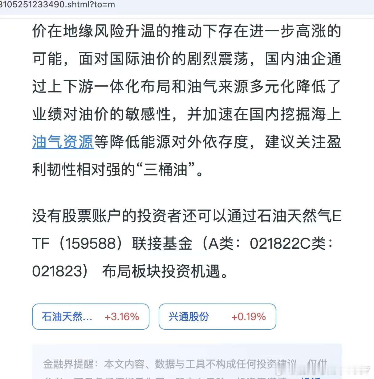 今天石油天然气大涨,继续新高。核心逻辑一句话:寒潮推升天然气需求与价格→地缘风险给油价加溢价→OPEC+控产稳价→国内政策与资金偏好共振→板块业绩与估值双升。天气寒潮(最强催化)美国寒潮叠加欧洲气温转冷,北美天然气期货两天涨超66%,带动全球气价上行;供暖刚需激增,欧洲库存偏低,供需缺口扩大。地缘溢价(情绪加速器)美伊、中东局势紧张,市场担忧供应中断,油价获“风险溢价”支撑;俄罗斯输气减少,欧洲更依赖美国LNG,推升出口预期与气价。供应端控量(价格托底)OPEC+2-3月暂停增产,维持减产规模,缓解过剩担忧;美国LNG出口装置投产,欧美价差拉开,刺激套利与国内生产积极性。国内政策与基本面(边际加分)2026年成品油零售限价首次上调,增厚炼油与销售利润;高股息、中特估属性凸显,成为资金避险与配置优选。资金与交易面(行情放大器)油气ETF持续吸金,主力资金净流入(如1月22日石油石化行业获超26亿元);板块轮动中传统能源补涨,机构与游资共同推动。但是石油天然气个股很难选,如果看好,可以逢回调进入石油天然气ETF(159588)。其次就是短期超跌+春晚预期的机器人50ETF159559。