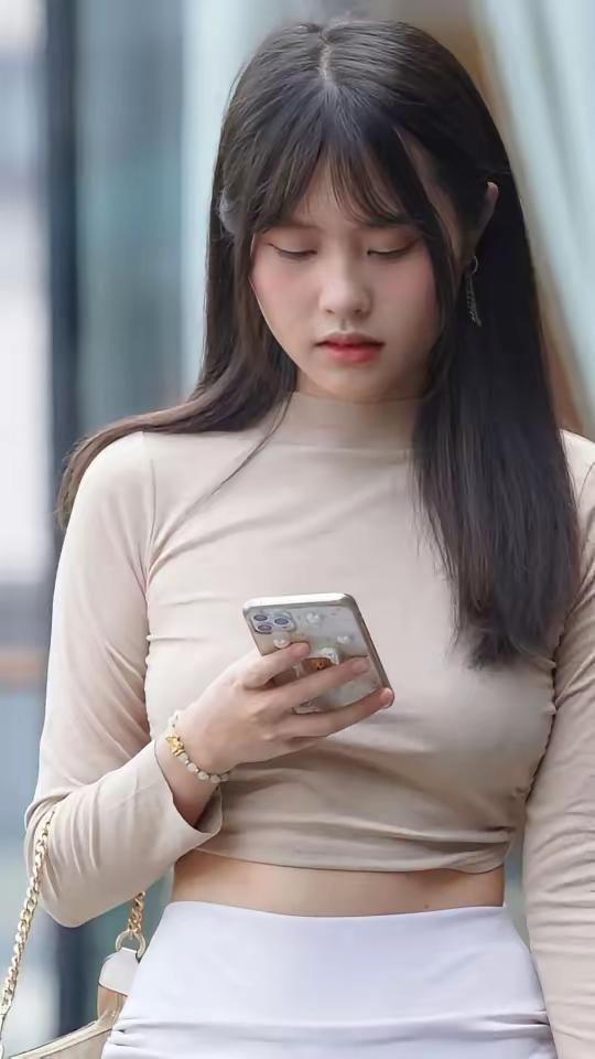低头看手机的瞬间,温柔又安静,简约穿搭衬出温柔气质,每一帧都像在诉说着小美好。