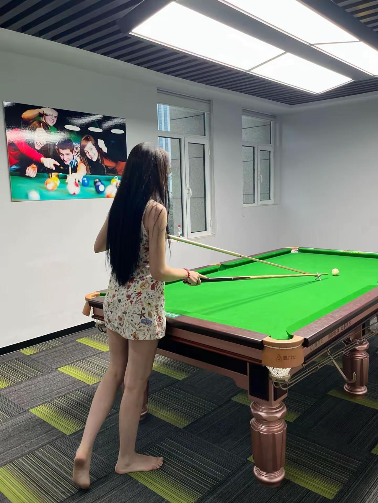 台球桌前的一抹温柔,长发与碎花裙,把休闲时光玩出了氛围感。