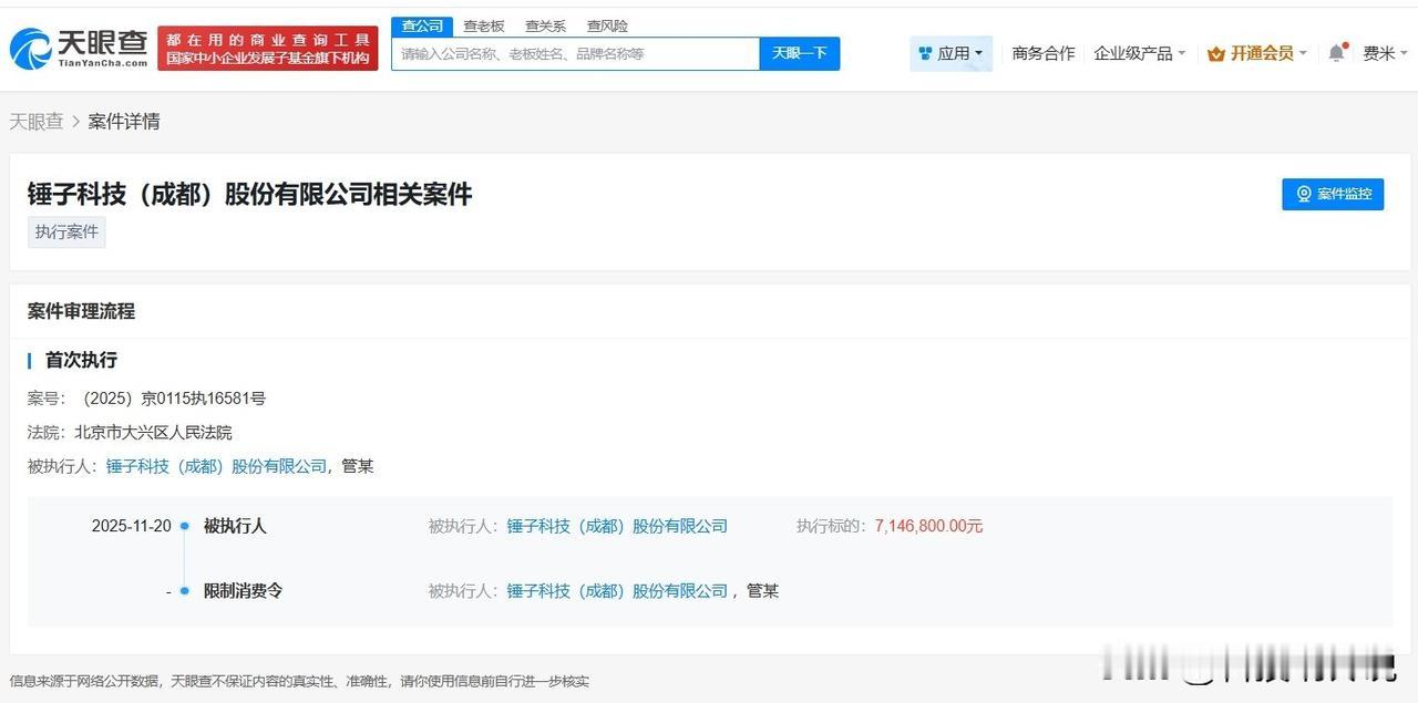 【罗永浩名下锤子科技再次被限消锤子科技因714万案款被限消】 天眼查天眼风险信