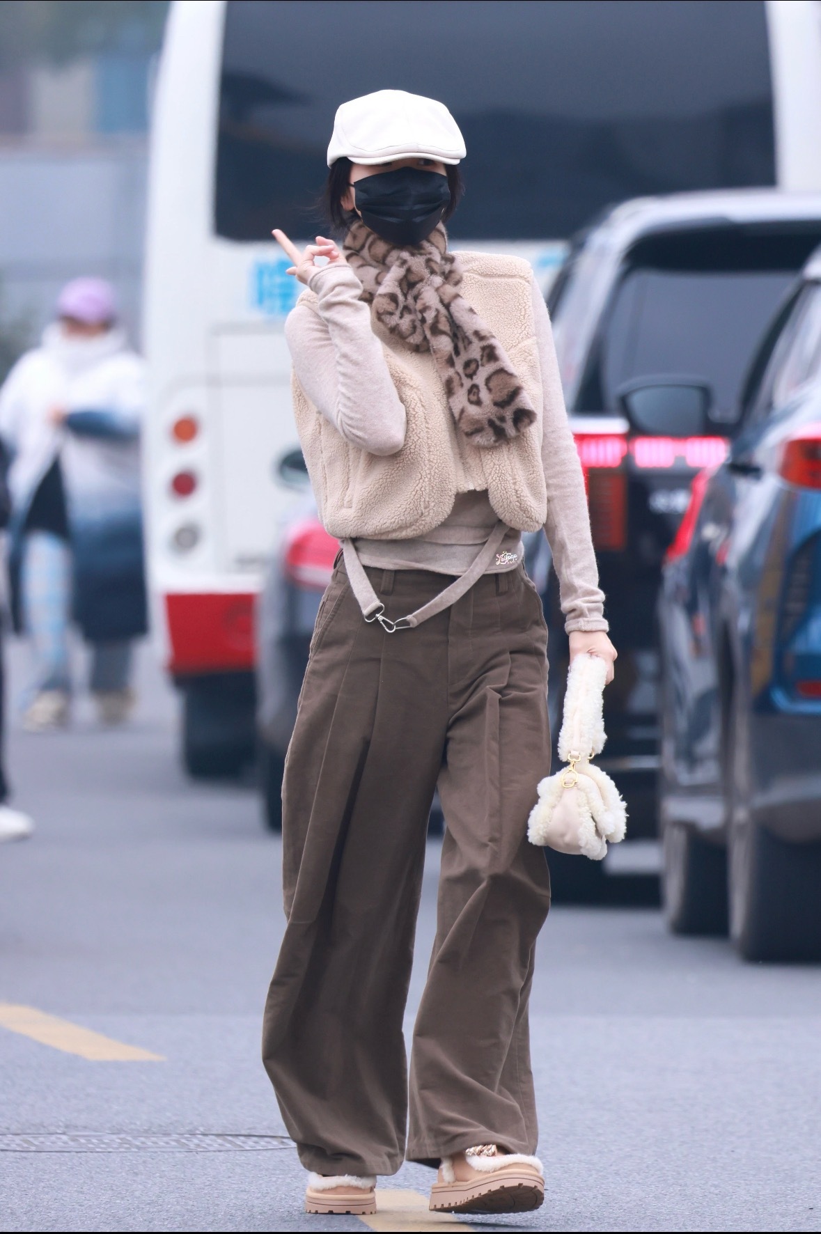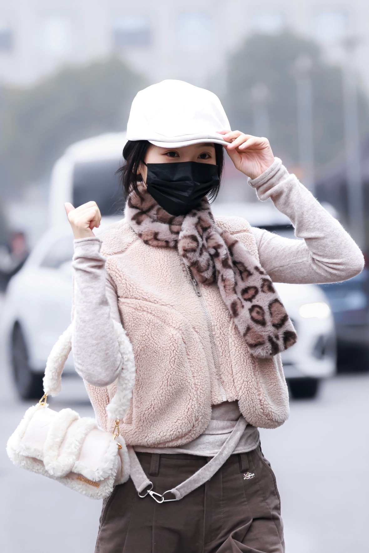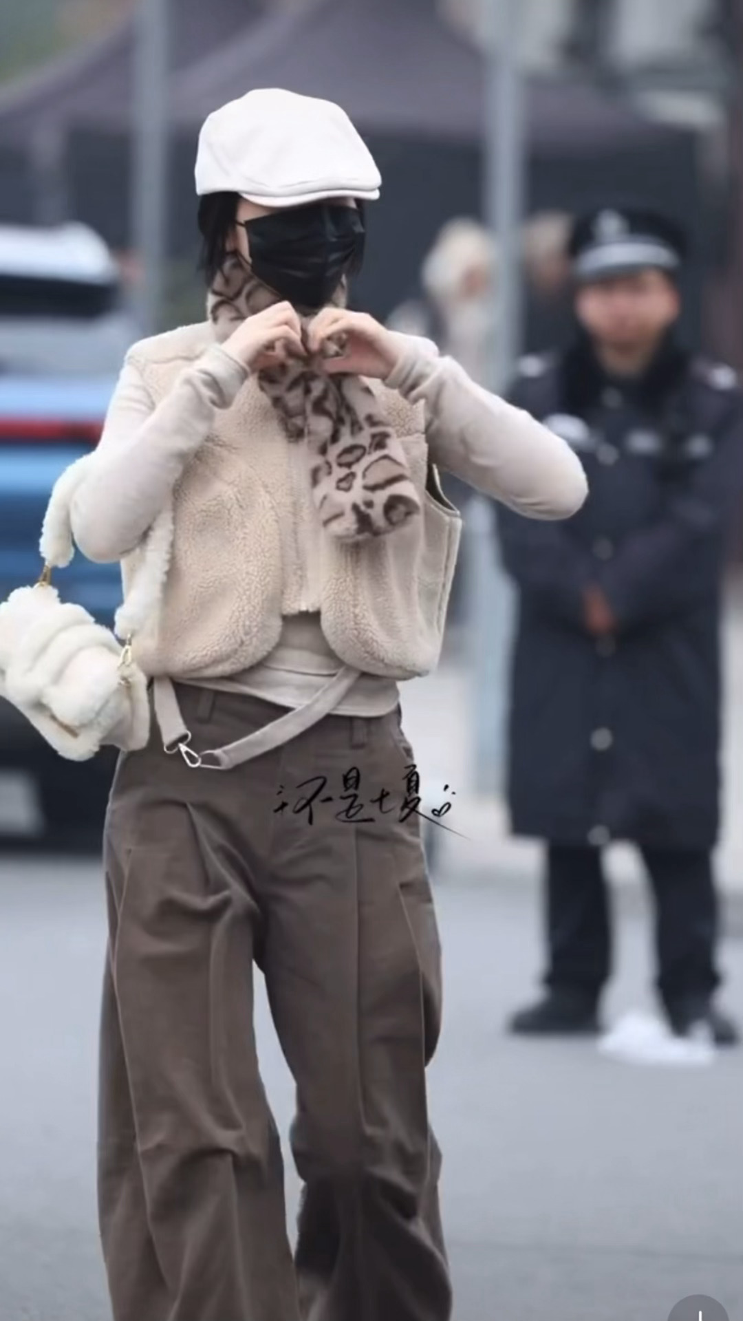 我那穿搭满分的可爱学姐今天毛茸茸的虞书欣奶茶色系穿搭