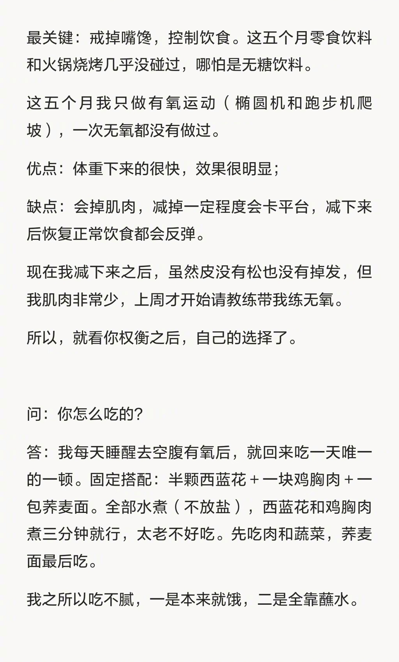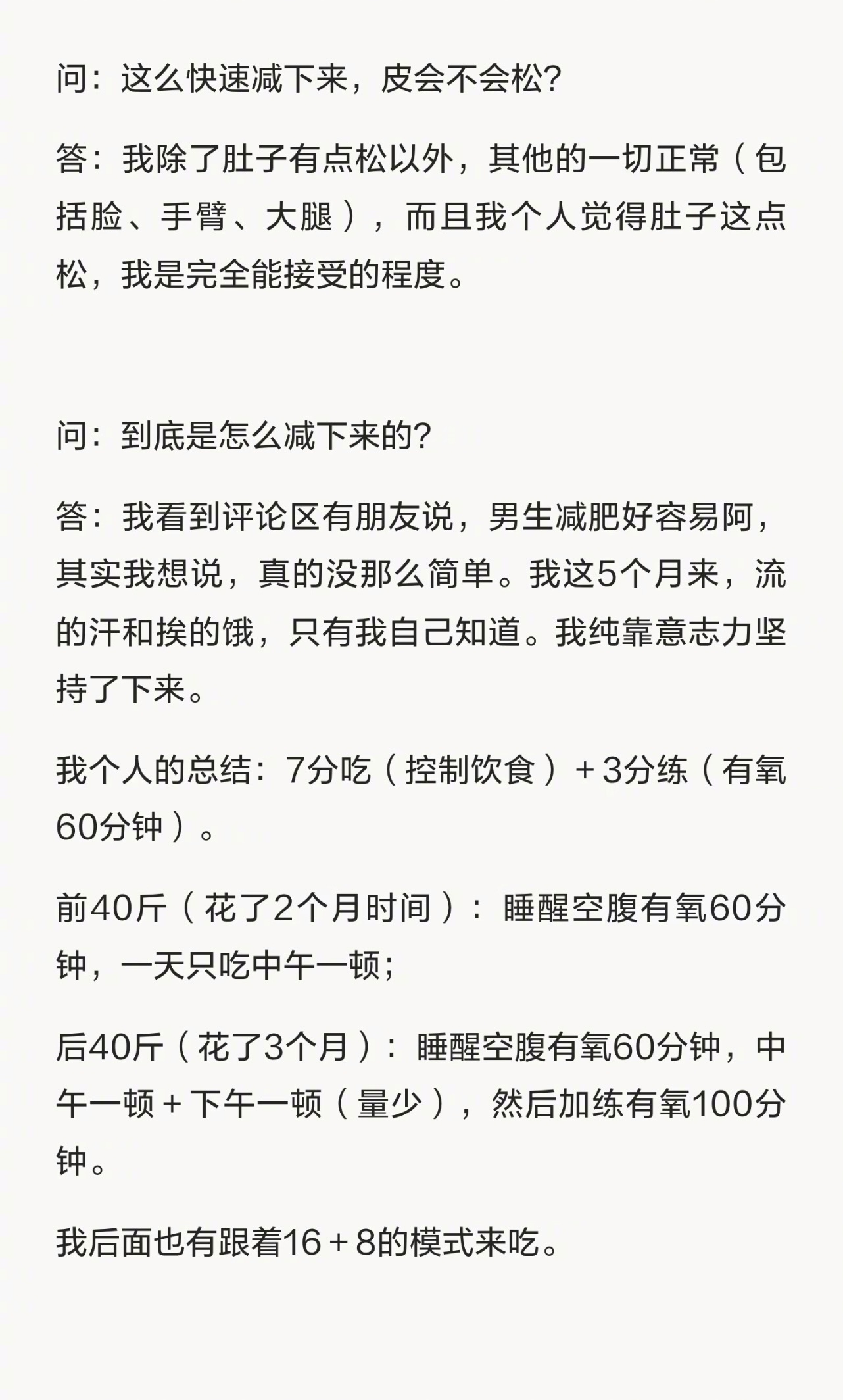 之前发了5个月减84斤的记录贴,评论区蛮多朋友都有一些问题的,我这篇专门回答一下。文中回答是大家比较想了解的,均是我亲身感受的个人经验。提醒:纯个人习惯分享,无科学依据(除了16+8的核心原理之外),其他慎用。