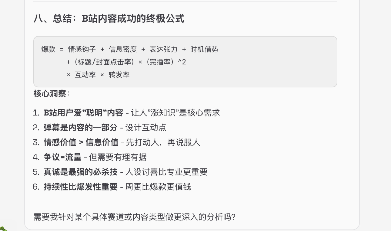让 Clawdbot 刷半小时 B 站,然后帮我总结的。第二条,还真没注意过 。。。
