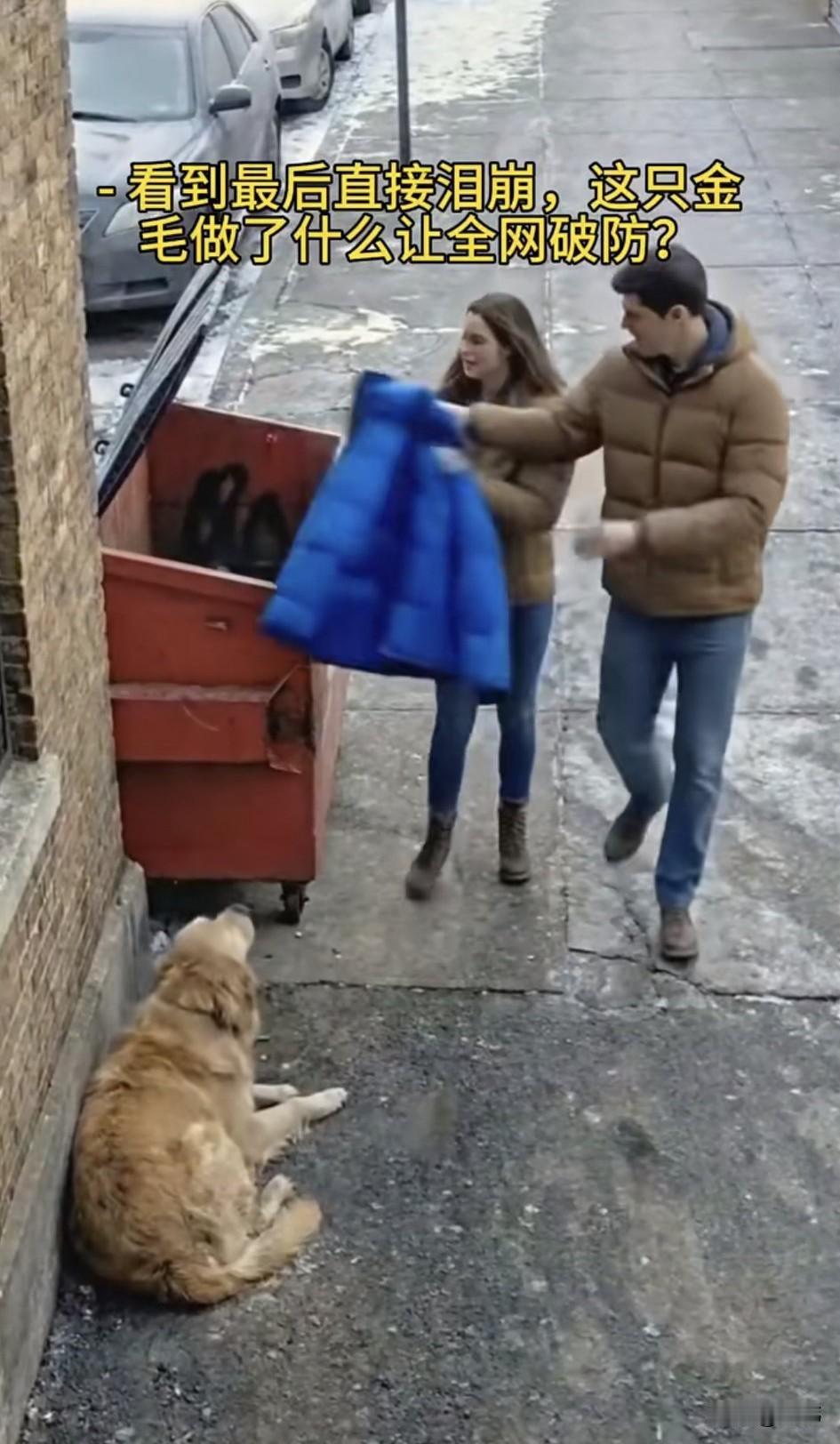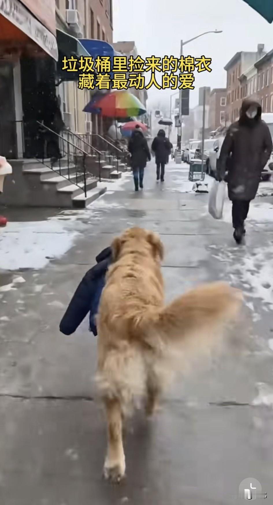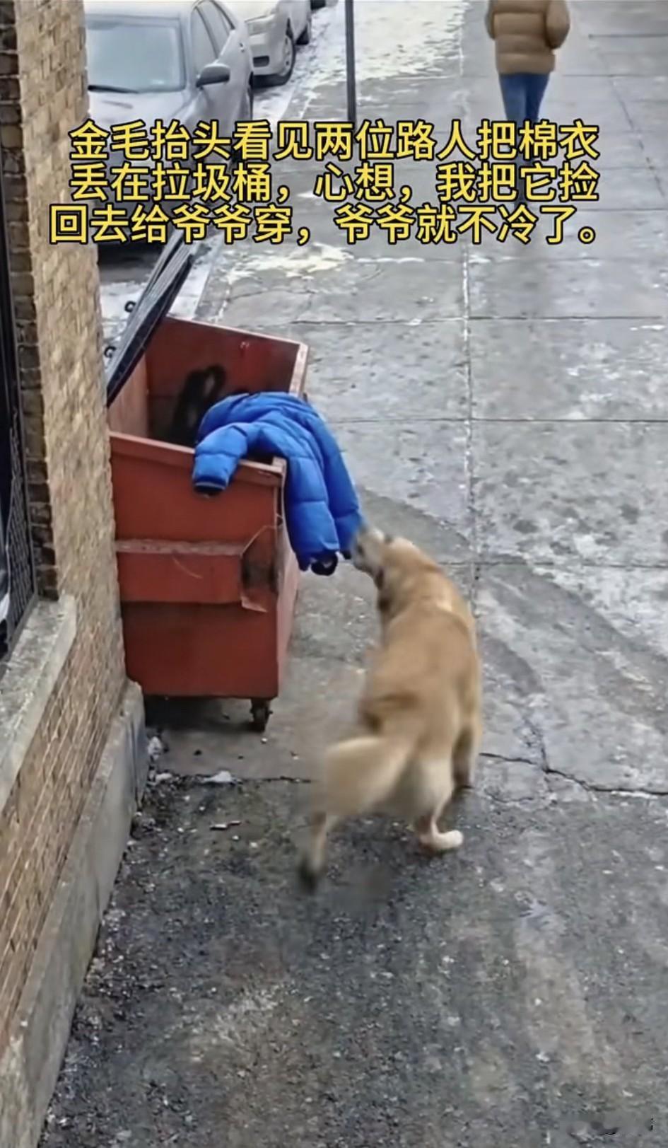 泪目了!一只流浪狗一直过着风餐露宿的生活,偶尔也会有好心人投喂它,特别是一位拾荒老人,有吃的都会分它一些。这天它蹲在墙角休息,由于下了大雪,它冻得瑟瑟发抖。 这时候一对情侣拿了一件蓝色外套丢在了旁边的垃圾桶里,狗狗看到后想到这衣服给老人穿,他不是可以御寒了吗?于是赶紧跑过去叼起衣服就朝老人那边跑去,老人正坐在另外一个街头,他裹着破旧的外套,正缩成一团的待在那里,狗狗赶紧把衣服拱到他的身边,然后用爪子指指衣服,意思是赶紧穿起来,就不会冷了,老人非常感动,他顿时红了眼,紧紧地搂住了狗狗,用棉衣裹住了他和狗狗。