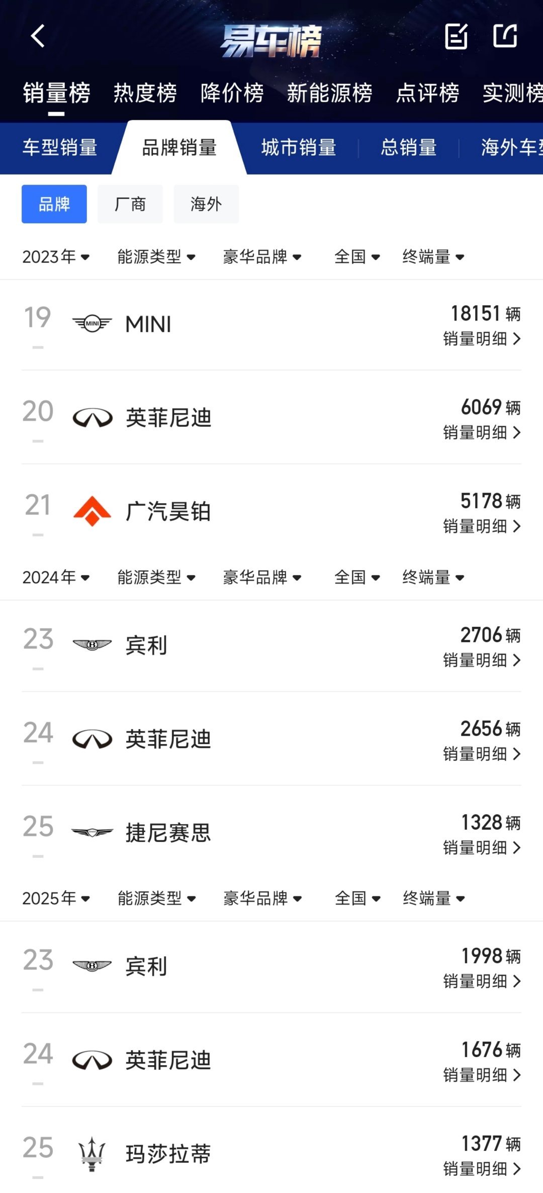 吃完饭看见停车场有辆英菲尼迪QX60,突然有点感慨。我小时候还挺喜欢英菲尼迪的,反倒觉得雷克萨斯有点“烂大街”。十多年前,英菲尼迪肯定是想在中国市场打开局面,所以赞助了一些国内的影视节目。电视剧有《北上广不相信眼泪》,综艺有《爸爸去哪儿》,电影有《熊出没之雪岭熊风》(没错,动画片),都是大热的片子。我特别记得,英菲尼迪当年的Slogan是“敢·爱”,定位“情感豪华”,拉近了和高端年轻用户之间的距离。2014年国产落地,随后国产Q50L和QX50上市,2015年份额同比增长33%,成为增速第二的豪华品牌。那几年是英菲尼迪在中国的市场份额的巅峰,为什么很快就急转直下了呢?2014-2021年,长达8年时间,国产车型只有Q50L和QX50两款,Q50L到停产都没见到实质性改款。当年《爸爸去哪儿》带火的QX60,直到2022年换代才国产。产品线布局失衡,沉迷吃老本,跟其他豪华品牌的差距越拉越大。动摇不了BBA,打不过雷克萨斯、凯迪拉克、沃尔沃,“敢·爱”的Slogan也被换掉,品牌定位模糊,不知道想卖给谁2021年,QX60变速箱缺陷被央视315曝光,核心大件质量问题频发,对于本来影响力就不高的英菲尼迪来说,简直是雪上加霜。燃油车基本盘持续萎缩,英菲尼迪老早就在搞轻混了,结果转型新能源迟迟没有落地。2024年开始,英菲尼迪在国内已经连宾利都卖不过了,彻底边缘化。大家觉得英菲尼迪这算不算“高开低走”?