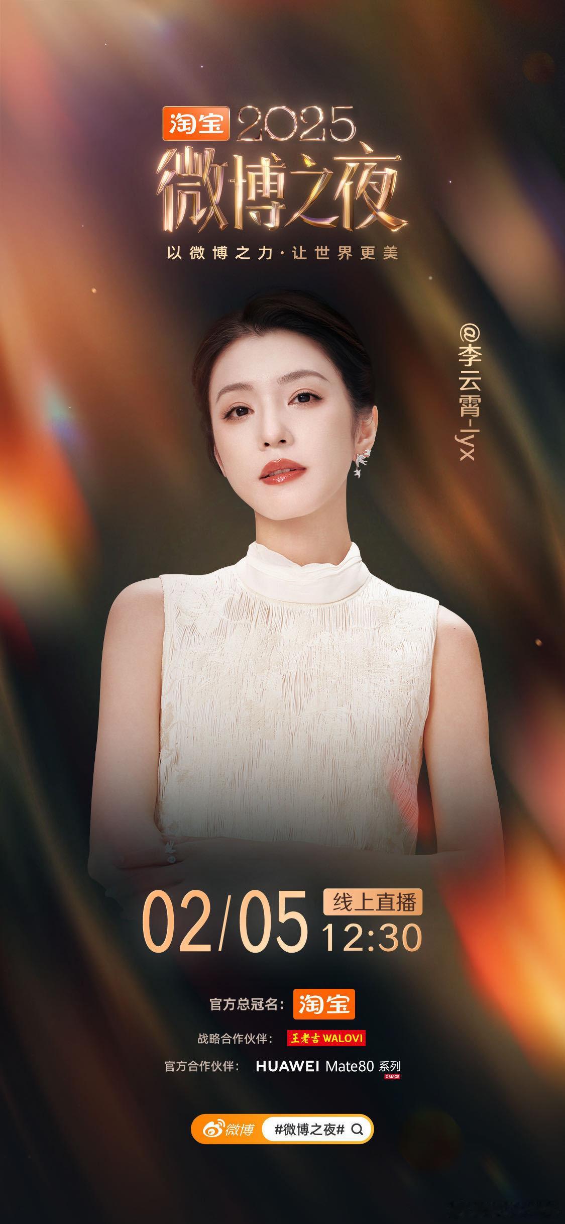 李云霄官宣微博之夜 在忙碌中把握每一次曝光,在作品中沉淀演员厚度。李云霄的节奏清晰而稳健,微博之夜将成为她连接观众、展示自我的又一个重要窗口。