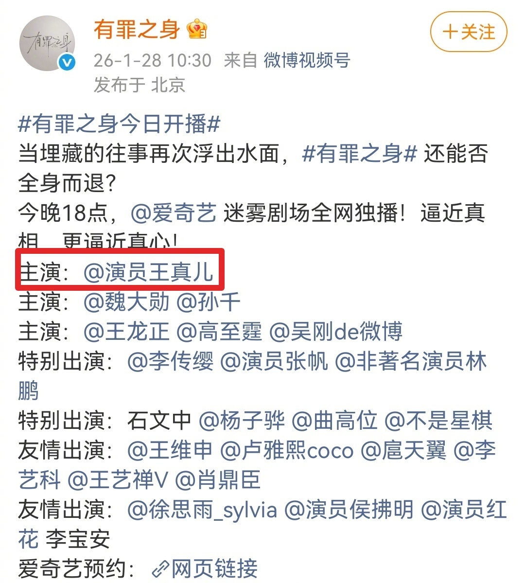 🥝悬疑剧《有罪之身》今晚6点空降开播!王真儿,友情主演变一番,压了魏大勋、孙千。