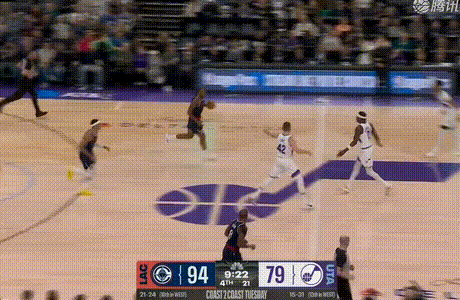 艾斯-贝利被伦纳德一个简单的胯下晃得脚步慌乱快船目前客场领先爵士20分快船vs爵士