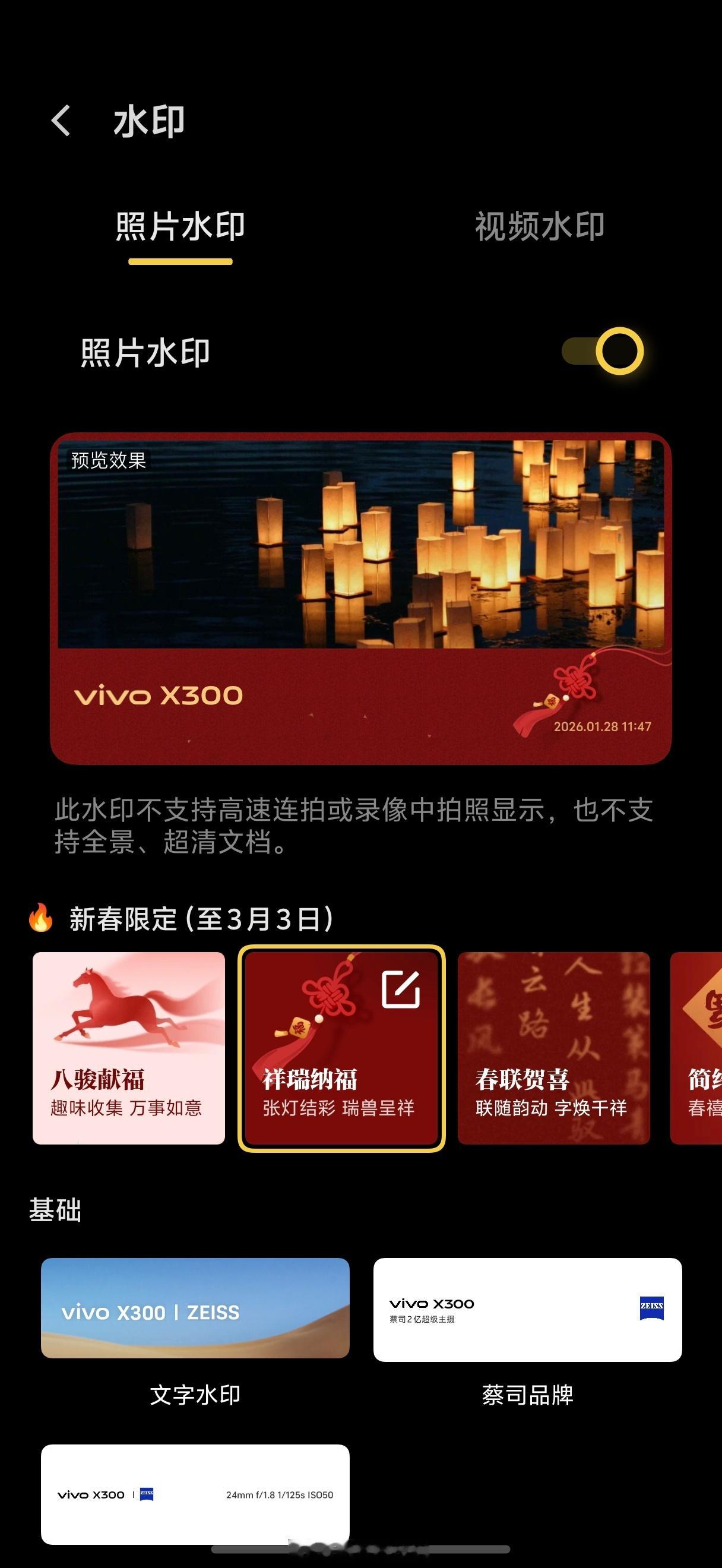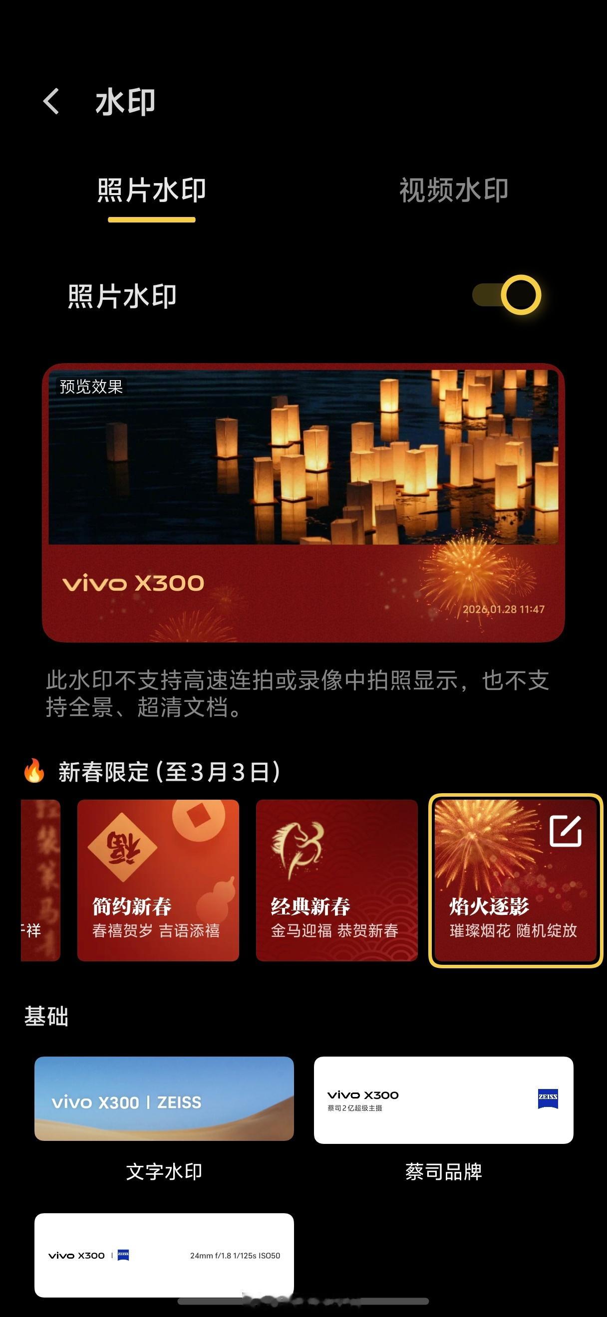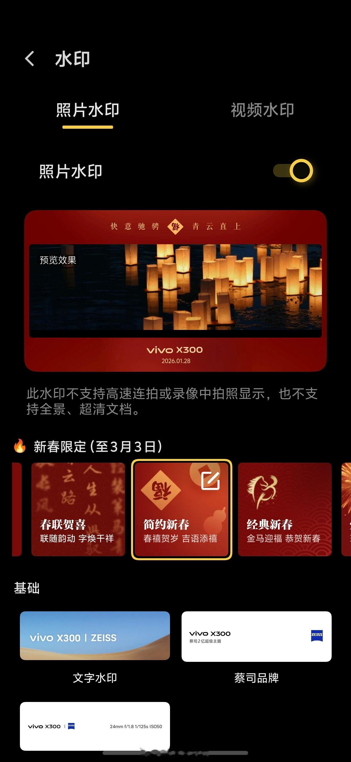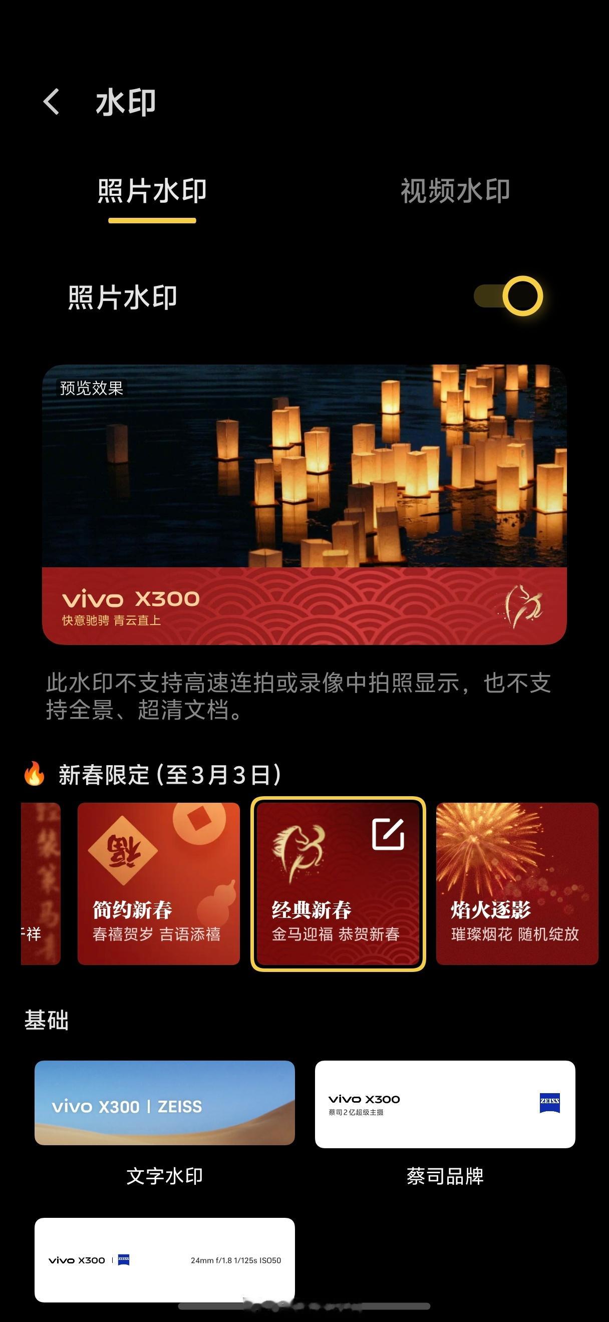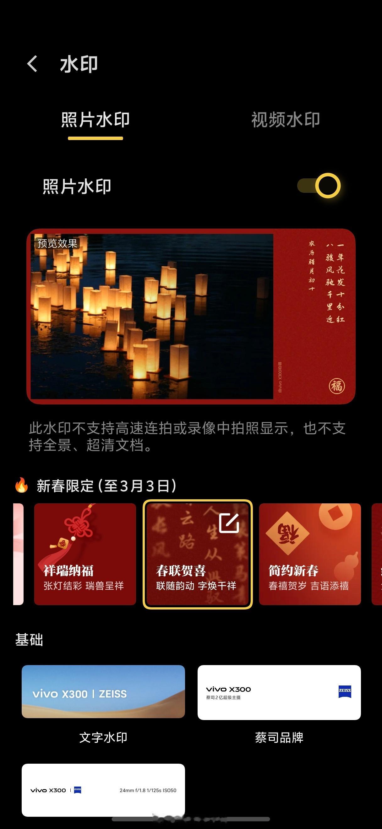 刚发现,vivo的新春限定水印来了,可选择的还挺多,快去试试?
