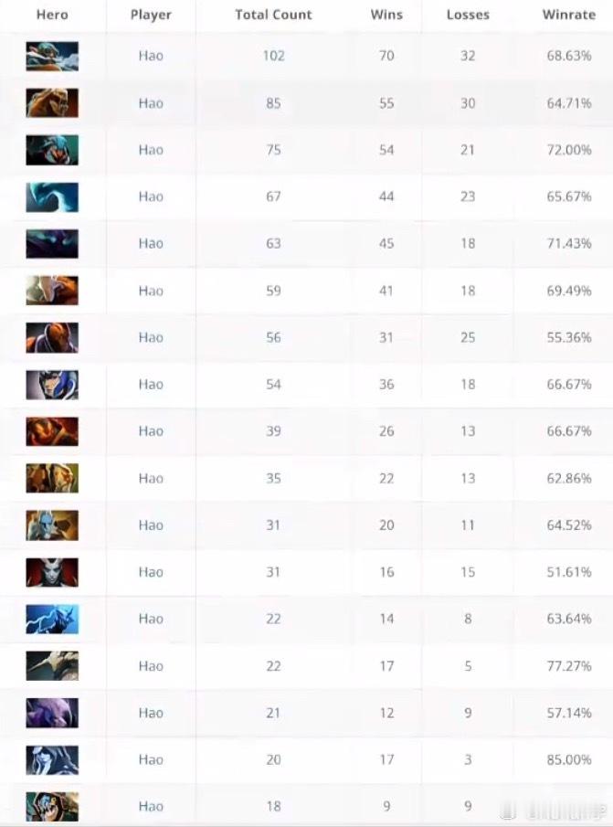 Hao职业生涯的英雄胜率真有点牛逼了,68的飞机,72的蚂蚁,71的幽鬼!dot