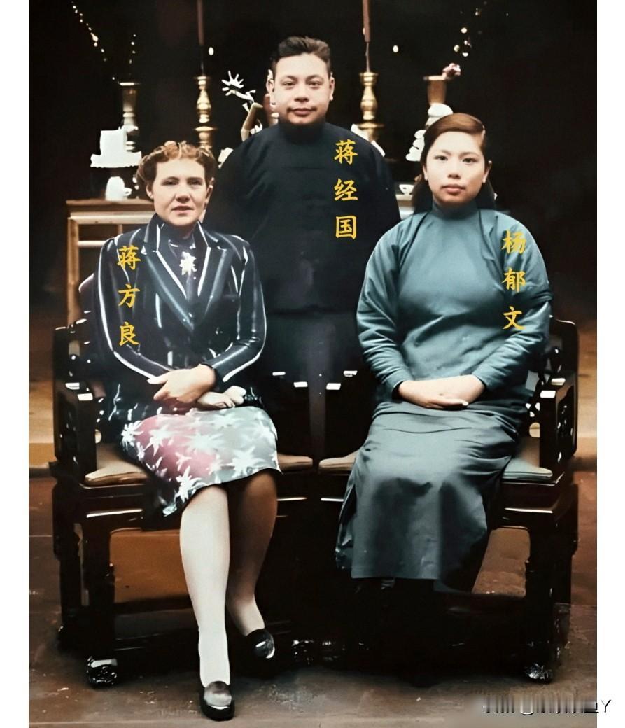 这是蒋经国夫妇与表弟媳杨郁文在室内的一张合影老照片,拍摄于上世纪四十年代。这可不是演戏,也绝非演员所扮演,确是货真价实的本人,三人容貌清晰可见,大家都瞧瞧吧!莫要被影视剧里所展示的样貌给忽悠了