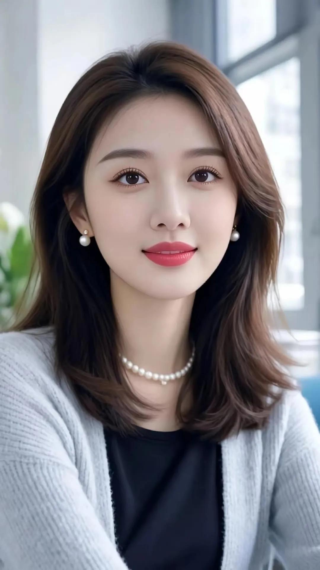 优雅气质,粉嫩花朵,珍珠项链,完美妆容,尽显东方美!