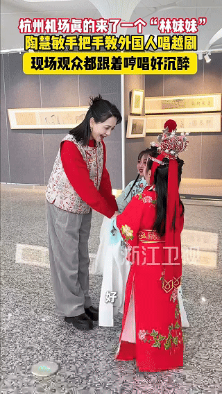 原来天上掉下个林妹妹是掉机场了大观园的林妹妹竟 “降落” 机场!陶慧敏一开口就是满满的古韵,和小演员的同台太有氛围感,连外国友人都被吸引围观,这波惊喜直接把越剧春晚期待值拉满!