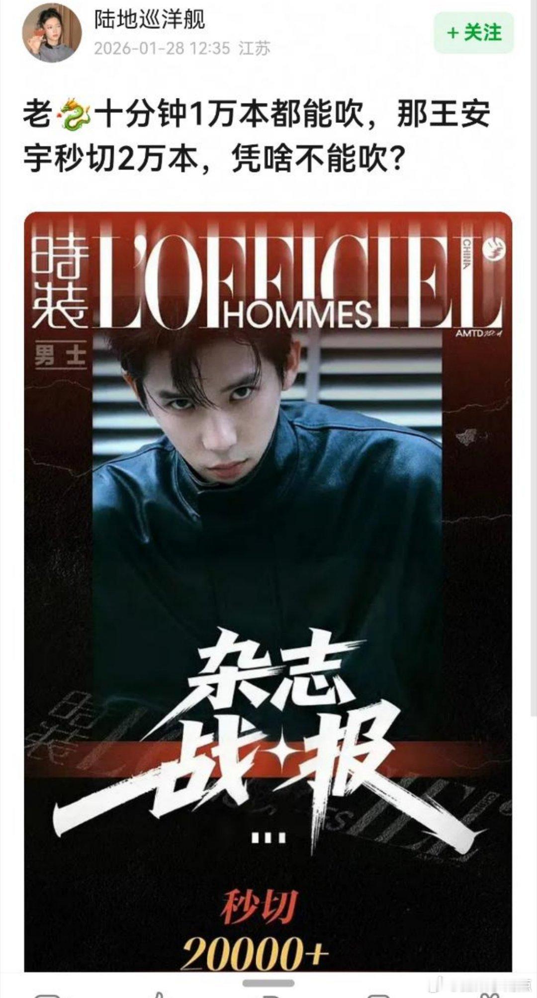 宋威龙算有效播剧吗?之前杂志销量一天三千都难,现在半小时快 2 万本对比同期王安宇杂志秒切2 万什么水平?
