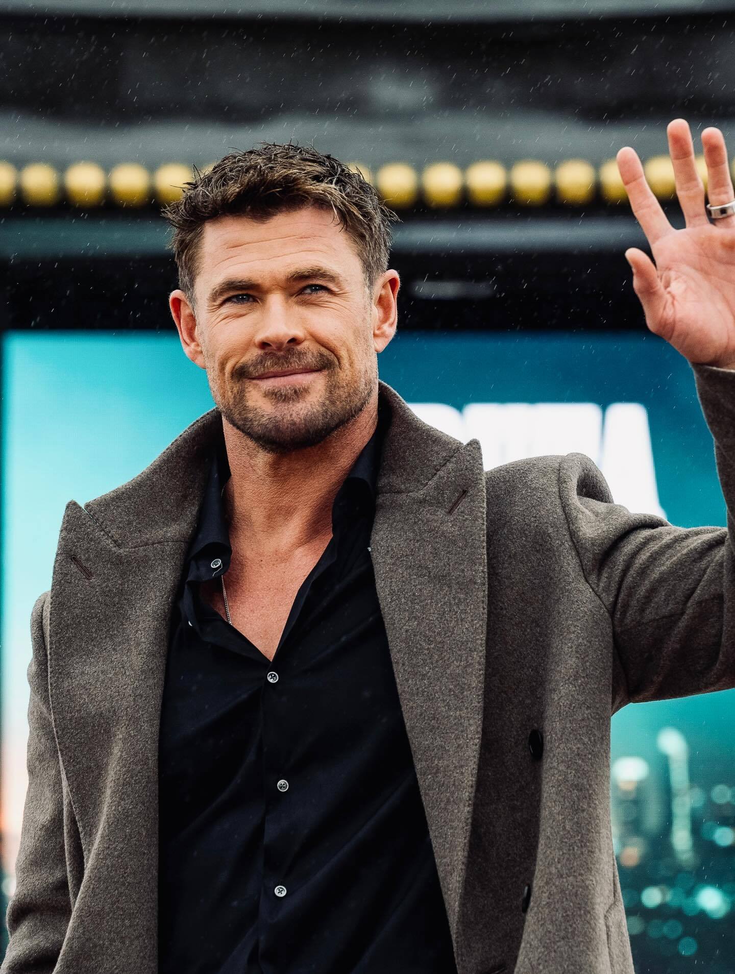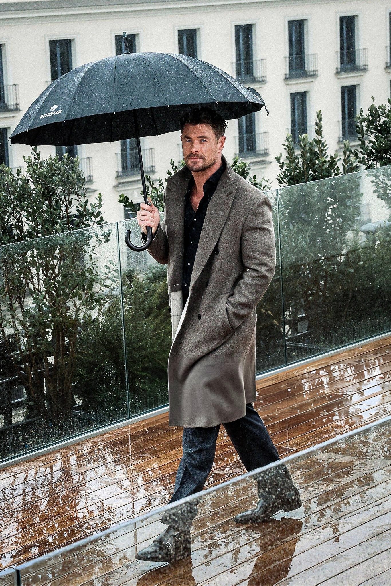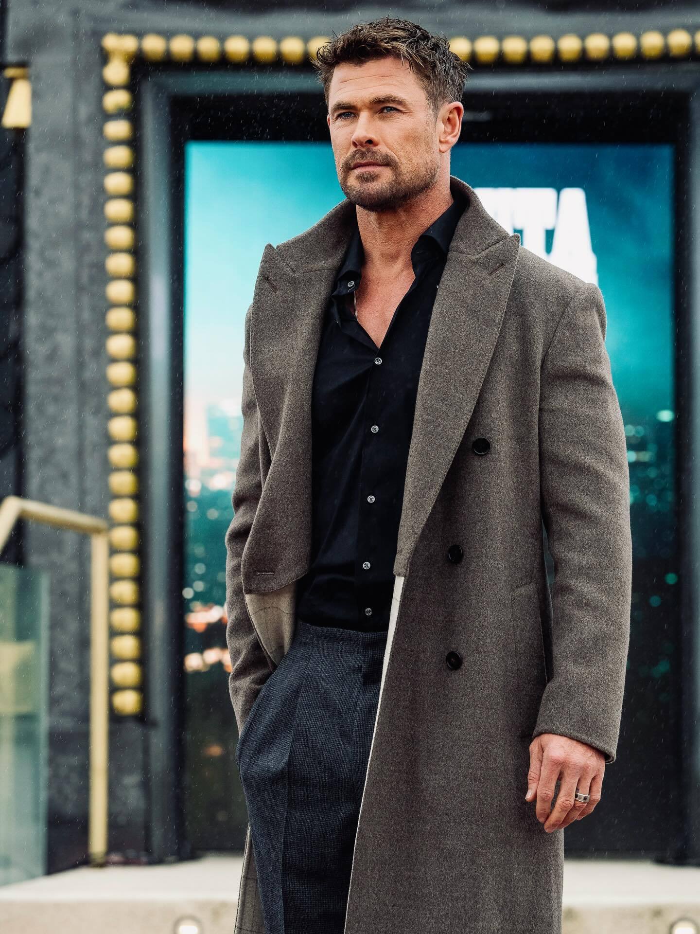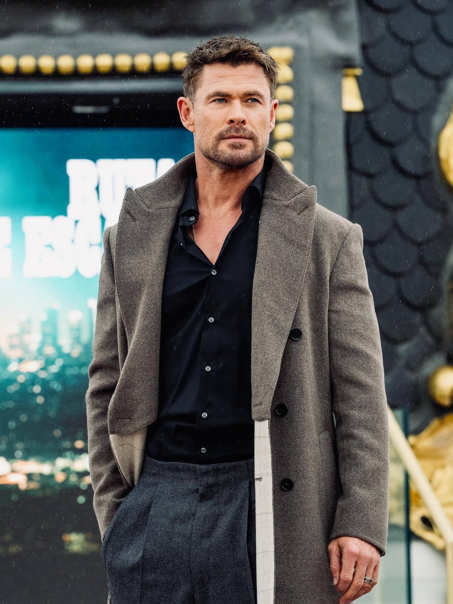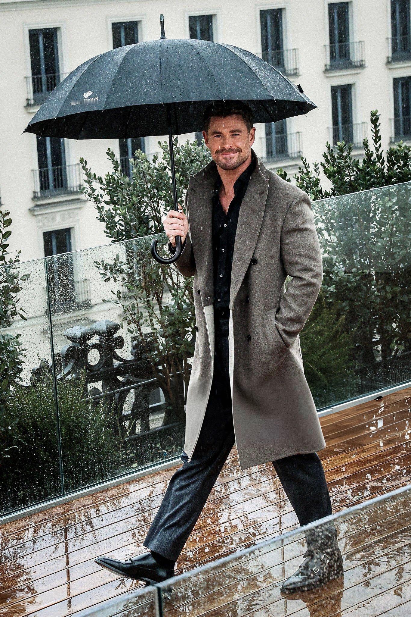 保持干燥:海总Chris Hemsworth马德里宣传新片《洛杉矶劫案》📷