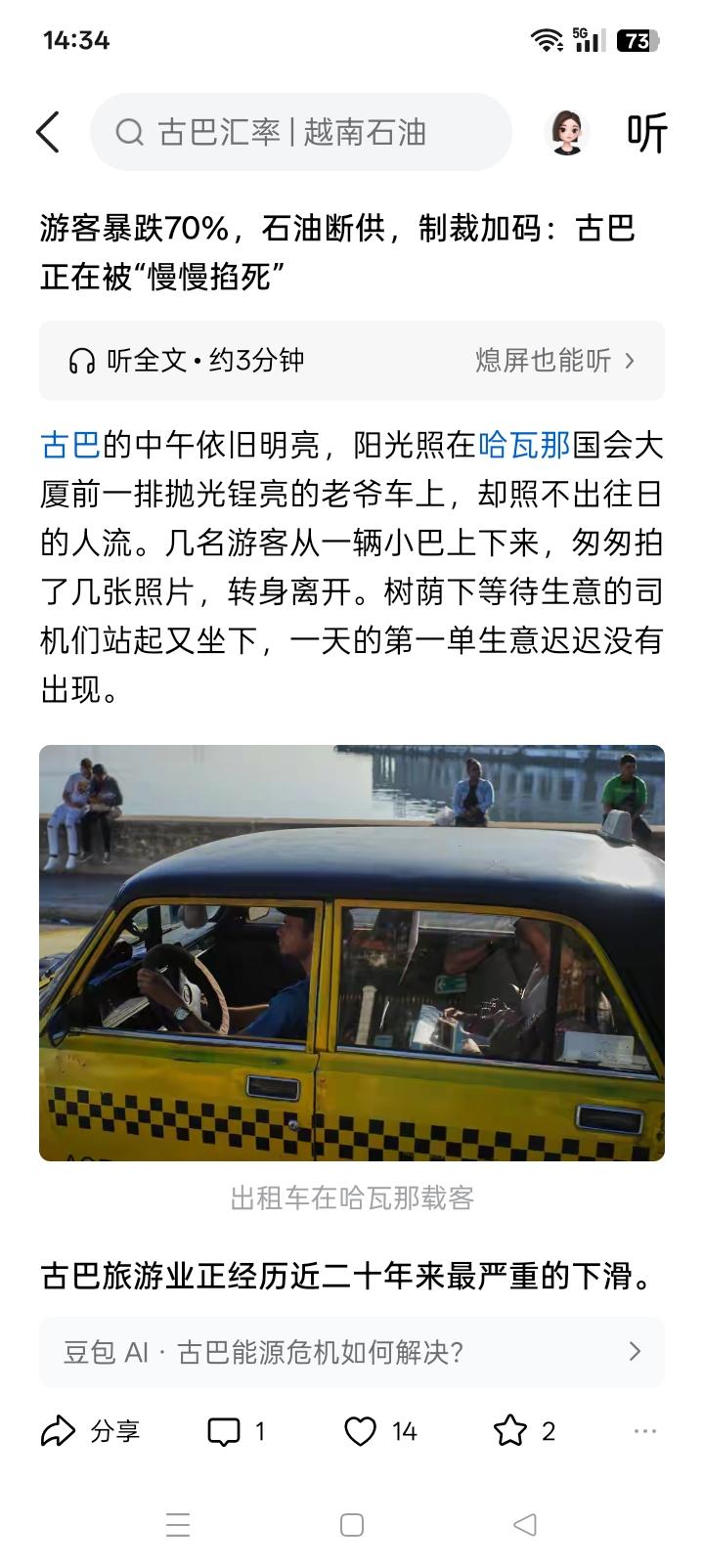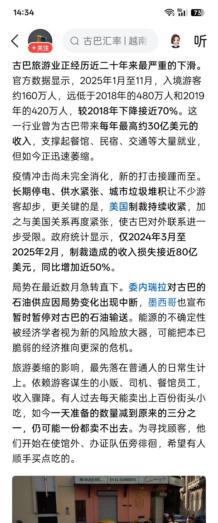 但愿古巴能坚持下去! 古巴无疑是一个十分顽强的国家,作为美国的近邻,却一直坚持反美半个多世纪,坚持不懈,持之以恒,精神可嘉。 据说,目前的古巴遇到了可能是很大的困难,说的是古巴自己国内开采的石油,仅仅是能够满足国内三分之一的需求,另外三分之二的石油需求,靠的是委内瑞拉和墨西哥的输入,才基本上能够满足了古巴对石油的需求。 但在20多天前,美国突然对委内瑞拉采取了军事行动,非法控制委内瑞拉总统马杜罗及其夫人,并且带往了美国。此后,美国又加紧了对委内瑞拉出口石油的油轮的海上拦截和扣押,可能已经造成委内瑞拉对古巴的石油供应中断。 然而,祸不单行,到了1月26日,墨西哥的石油公司又宣布暂停对古巴的石油供应,原计划在墨西哥装载石油运往古巴的油轮,也取消了航行计划。 古巴发电使用的燃料,可能主要就是石油。在委内瑞拉和墨西哥没有断供古巴石油之前,网络上就有消息说古巴经常停电,好像电力供应缺口很大。现在,没有了委内瑞拉和墨西哥的石油供应,不知道古巴有没有从其它渠道获得石油。古巴人口只有1100万,假如从别的渠道获得石油,应该也不是个很大、很困难的事情。