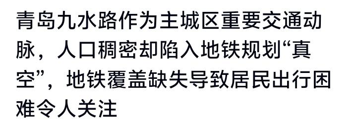 青岛九水路十万居民疾呼:主城黄金走廊竟成地铁“遗忘角落”,我们的出行困局谁来破?