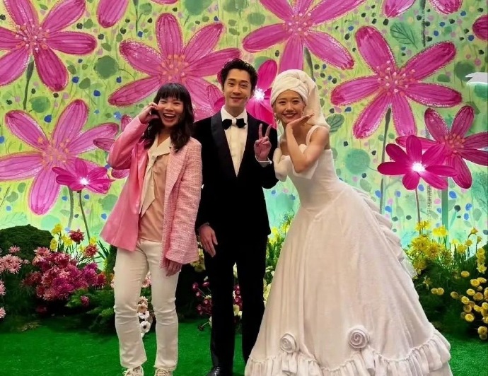 Lulu太鬼马可爱了,婚礼上用浴巾包头,婚纱采用毛巾材质做的,真的很别具一格。