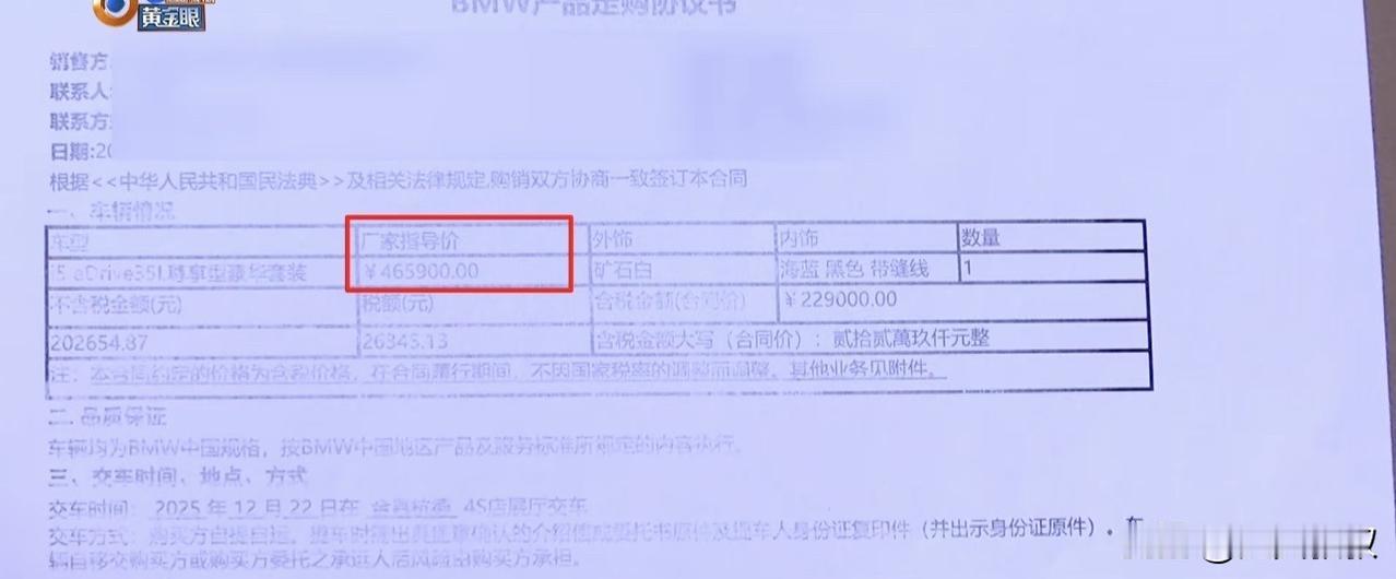 浙江杭州,一女子花了22.9万买了一辆宝马i5电动车,提车几天后,销售联系女子表示要有一笔购置税要交,女子感觉很奇怪,电车不是免购置税吗,怎么还要交税?虽然有质疑,女子还是交了5000多元购置税,询问税务部门得知,即便车价过低这笔钱也是要交的,对此女子认为4S店骗了自己。 唐女士介绍,去年12月底的时候,自己在当地一家4S店买了一部宝马I5电车,原本46万多的指导价,唐女士以22.9万的含税价格买了下来,加上保险的话,一共是23.6万元。 没过几天,销售就联系了唐女士称有一笔购置税没交,唐女士就觉得很不对劲,自己明明买的是电车,怎么也要交购置税呢? 对此,销售表示自己也不清楚,于是,唐女士又交上来5600元的车辆购置税,询问税务部门得知,是车辆开票价格过低,系统中有车辆的最低价格,即便低于这个价格,也还是要交税的。 唐女士就觉得,既然是4S店销售的,怎么会不知道政策呢?这名应该4S店来承担。 然而,4S店工作人员则表示,我们是通知说新能源车不交税,税务这个事情我们也没办法预估的,还是要以税务部门的清单为准,同时,4S店提出愿意补偿2000元现金和1000元储值卡,不过遭到了唐女士的拒绝。 事发后有人说,什么?宝马5系已经22万了?跌的真的是连妈都不认识了。 还有人说,这是税务要的,和人家4S店有什么关系,肯定是这个车优惠太多了,超过税务部门的底线了,每个车都有底线,否则的话,人人都可以按照一个低价逃税,跟卖房子一样。 也有人说,车都提了,就不差这三瓜俩枣的了,本来46万的车子,现在23万不到,一半的价格,要啥自行车呢? 其实,既然消费者到4S店购车,那么,作为4S店应当有义务如实的告知消费者,车子的价格,比如保险是多少,税费是多少,这样加起来上路是多少钱。 如果4S店故意隐瞒了价格,严重的话则是消费敲诈,按照消费者权益保护法第55条的规定,商家消费欺诈的,消费者享有退一赔三的权利,也就是说,一旦认定4S店是消费欺诈,那么,唐女士能够获赔60余万元。 但是,是不是消费欺诈,不仅仅要看价格错了,还要看商家的主观状态,到底是故意诱导客户,让客户做出虚假的意思表示,如果商家主观上没有欺骗的故意,虽然也导致了顾客的损失,那么,这只能算作是违约。 就本案来看,4S店告知唐女士税费是2300元,结果却被收取了5600元,而按照税务部门的回复来看,显然是车子是有底价的,即便4S店以低于底价出售,税费还是这么多,不会因为车价低就收取过低的税费。 因此,商家的行为属于违约行为,民法典第五百七十七条规定,当事人一方不履行合同义务或者履行合同义务不符合约定的,应当承担继续履行、采取补救措施或者赔偿损失等违约责任。 由于客户和4S店之间已经有了合同,合同中也载明含税价格是22.9万元,因此这笔钱应当由4S店来承担,而不是顾客来承担。 对此,你对本案有什么看法? —————————— 关注我,带你评析法律热点,关注冷暖人生。 文章原创,抄袭必究