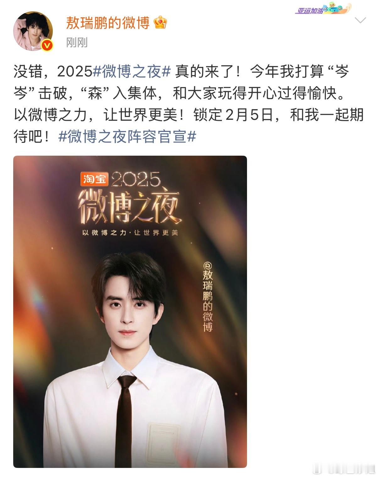 敖瑞鹏微博之夜官宣啦~敖瑞鹏微博之夜官宣敖瑞鹏微博之夜海报微博之夜 星空毯