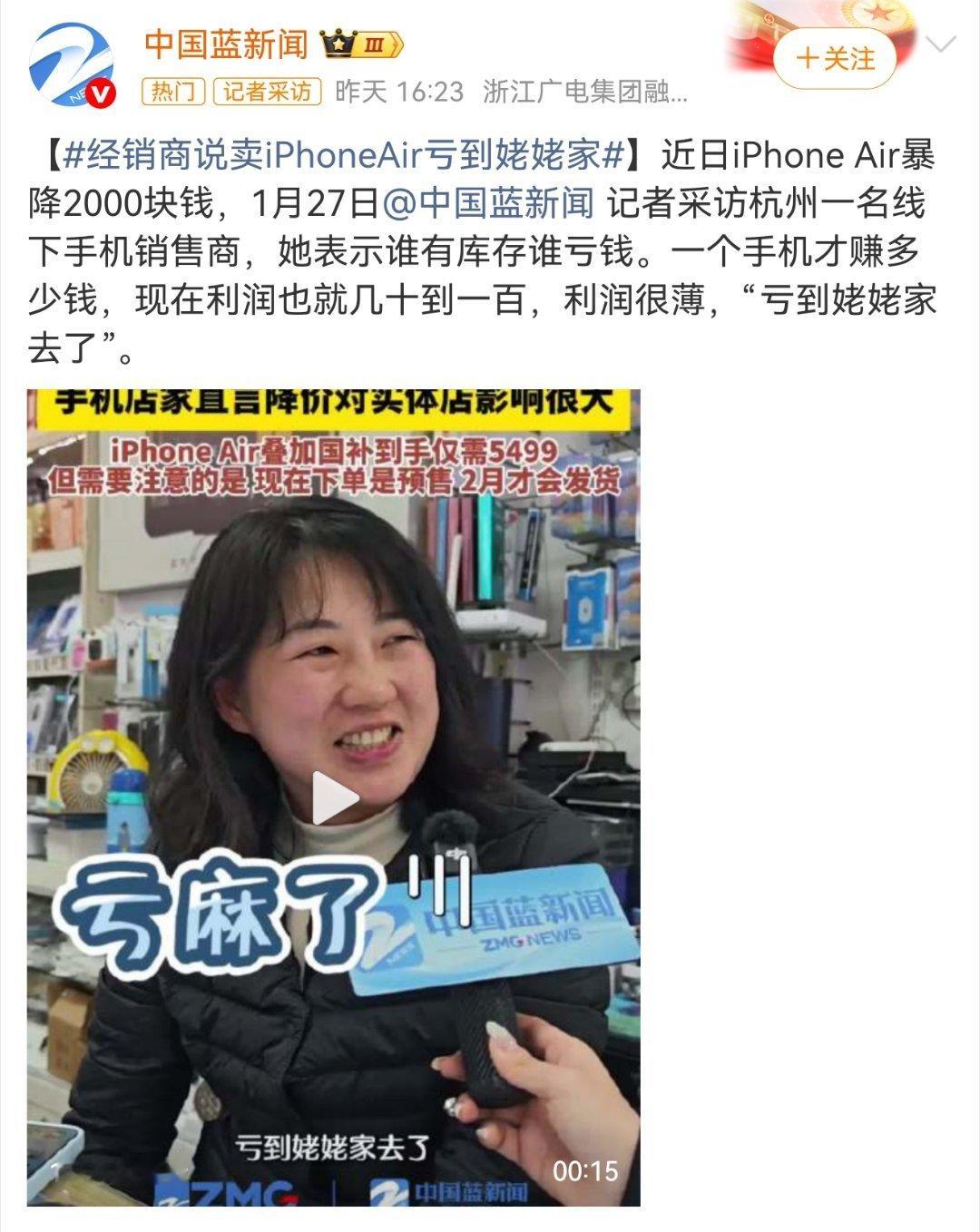 iPhone Air 别看这几天挺热闹,真买的能有多少是拿来当主力机用的,配置砍的这么多,纯纯是样子机。提到iPhoneAir销量卖手机的笑了