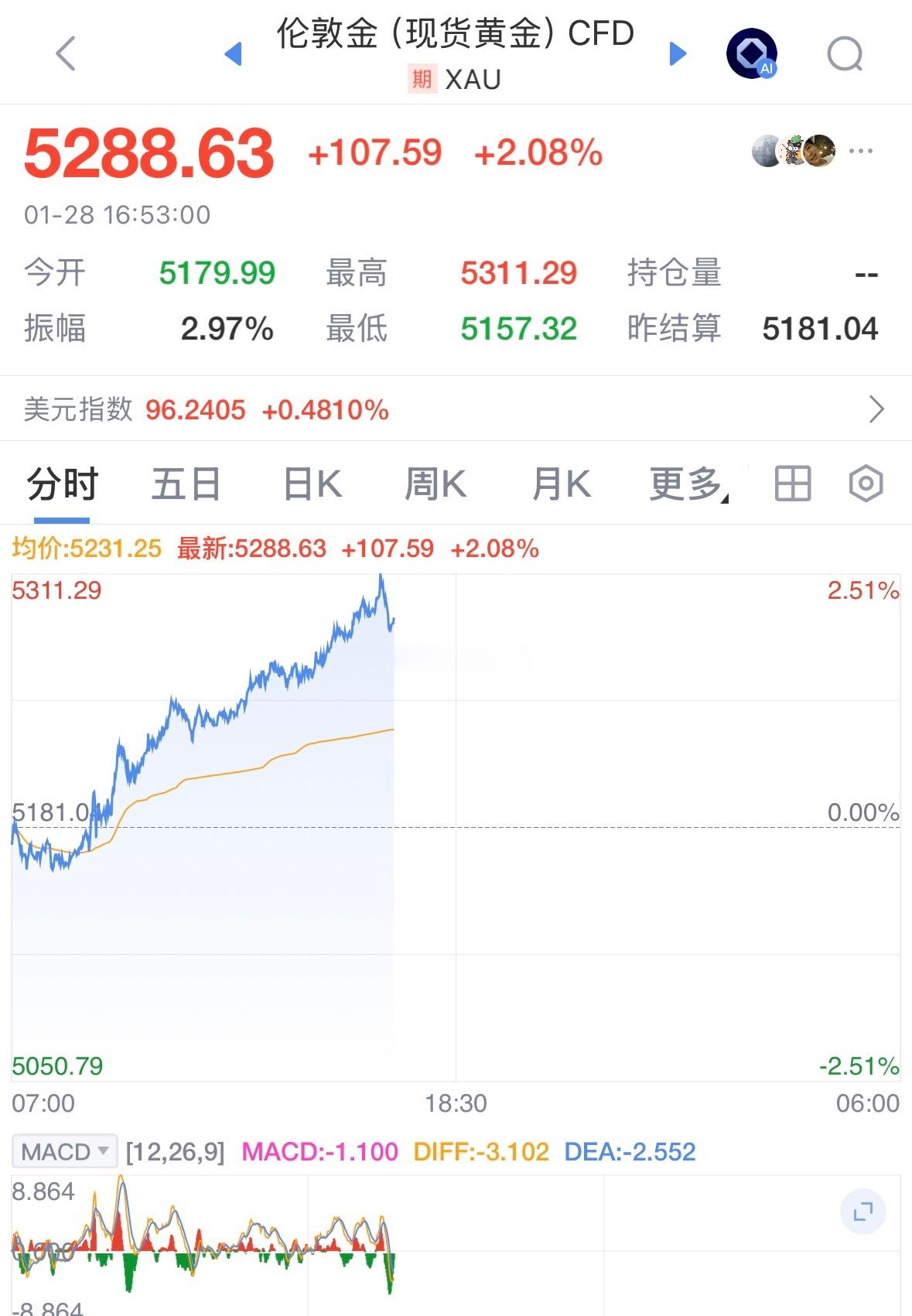 黄金白银再涨爆开年贵金属牛市狂飙!黄金站稳5200美元/盎司新高,白银创117.