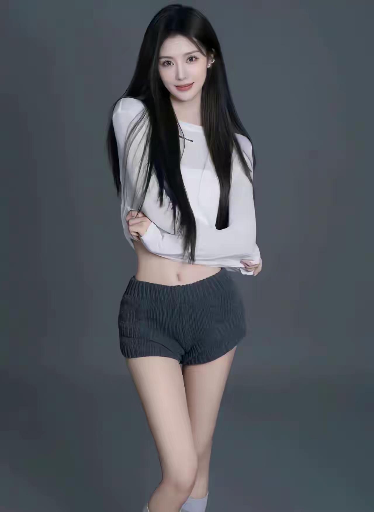 甜美少女风,温柔微笑,白色上衣搭配灰色短裤,清新自然。分享一张相册里随手拍的天空 中老年妇女该穿什么衣服