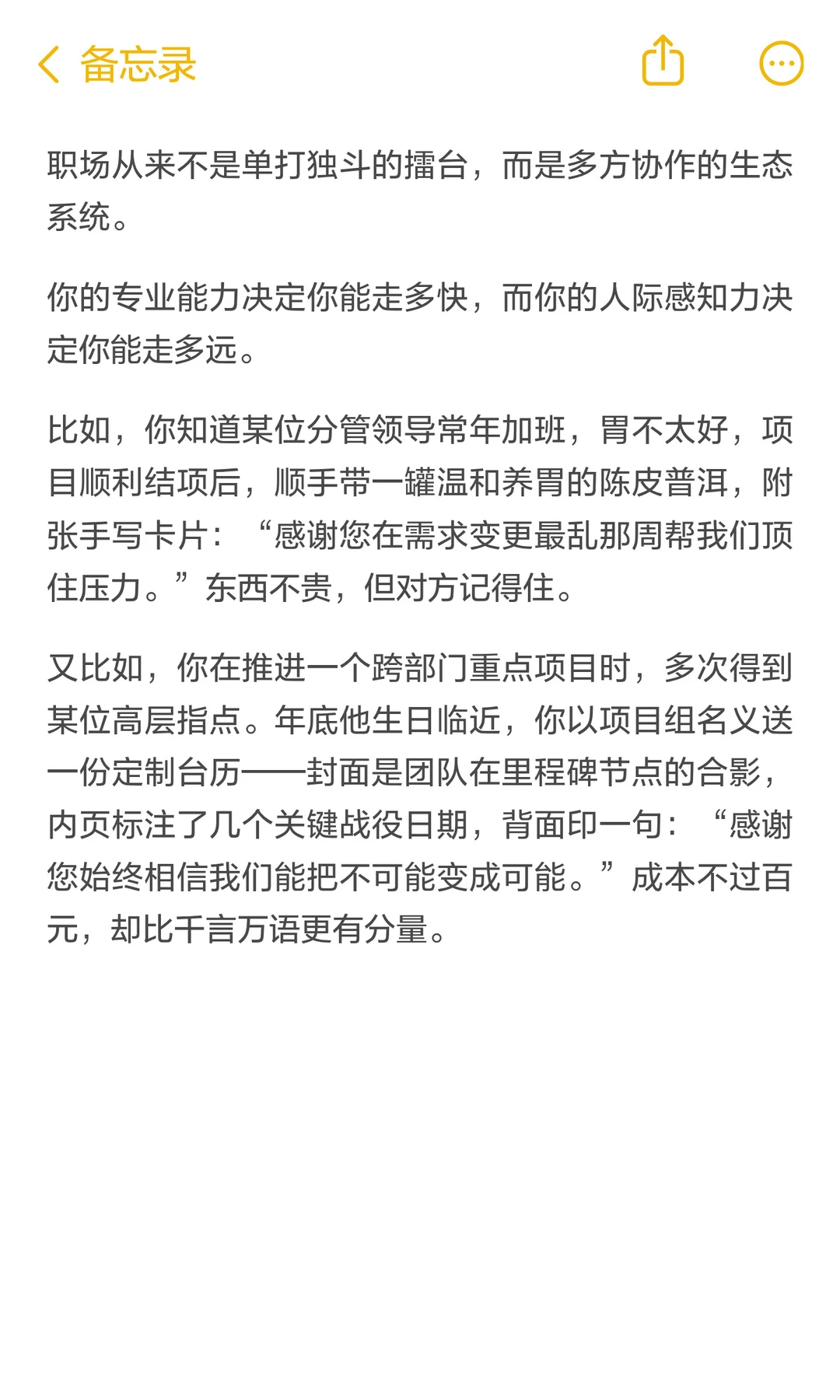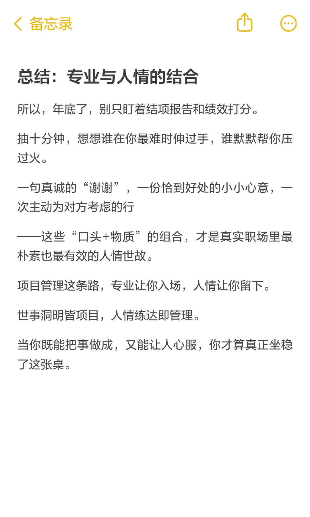 年底了,你给领导和你的贵人送过礼吗?或者表达过感谢吗? 这几天有伙伴问我,这些人情世故,他不好意思表达,连感谢都不好意思说[捂脸] 你得明白:人情世故不是虚话,它既有嘴上的分寸,也有手上的分量。 世事洞明皆项目,人情练达即管理。