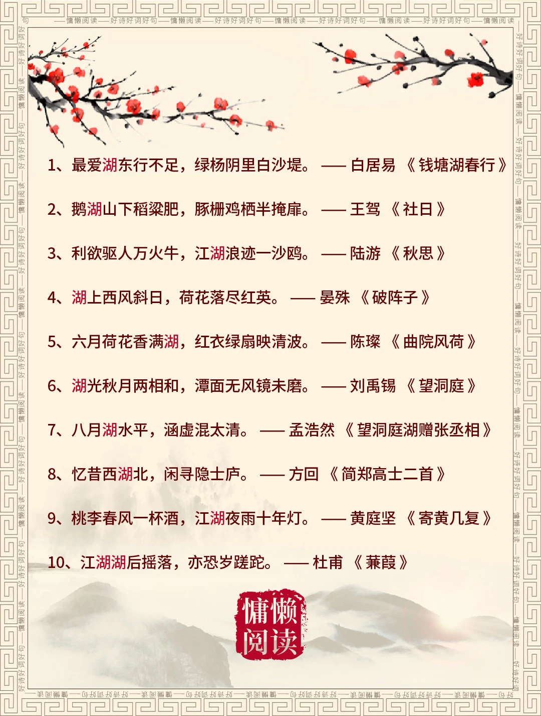 今日飞花令:“湖”字入诗,请君接令