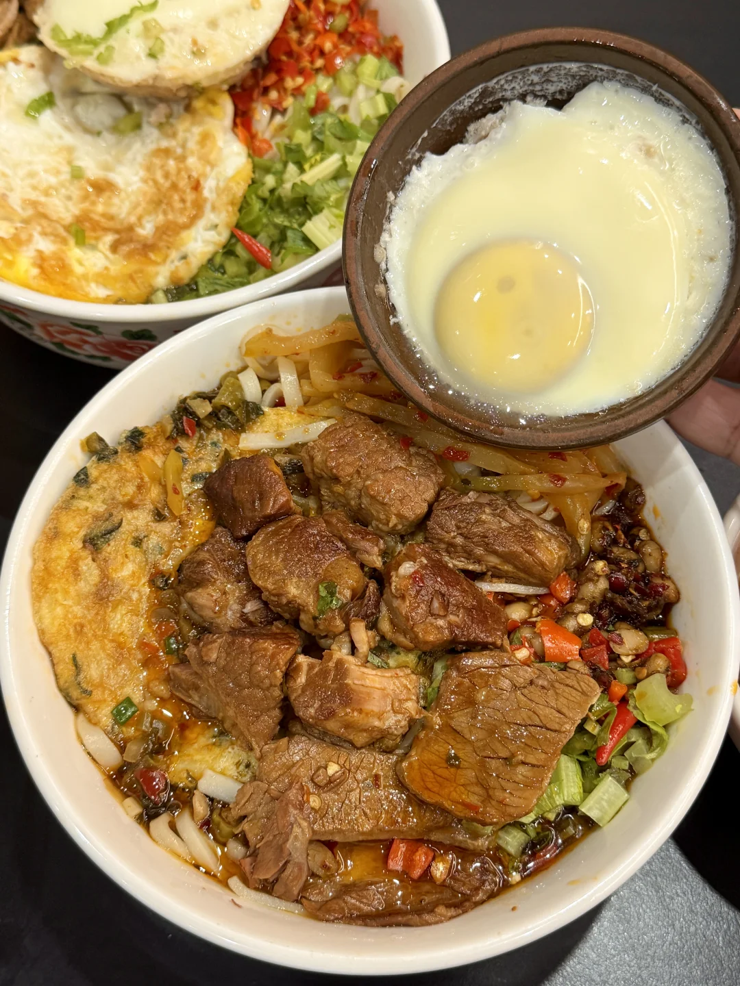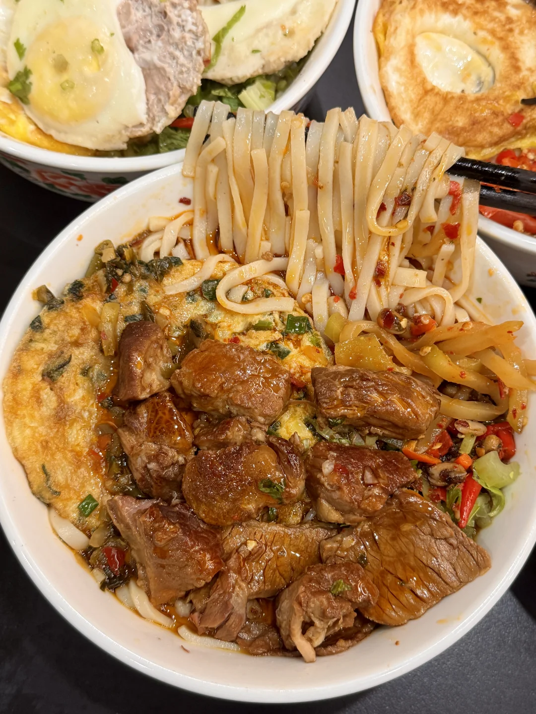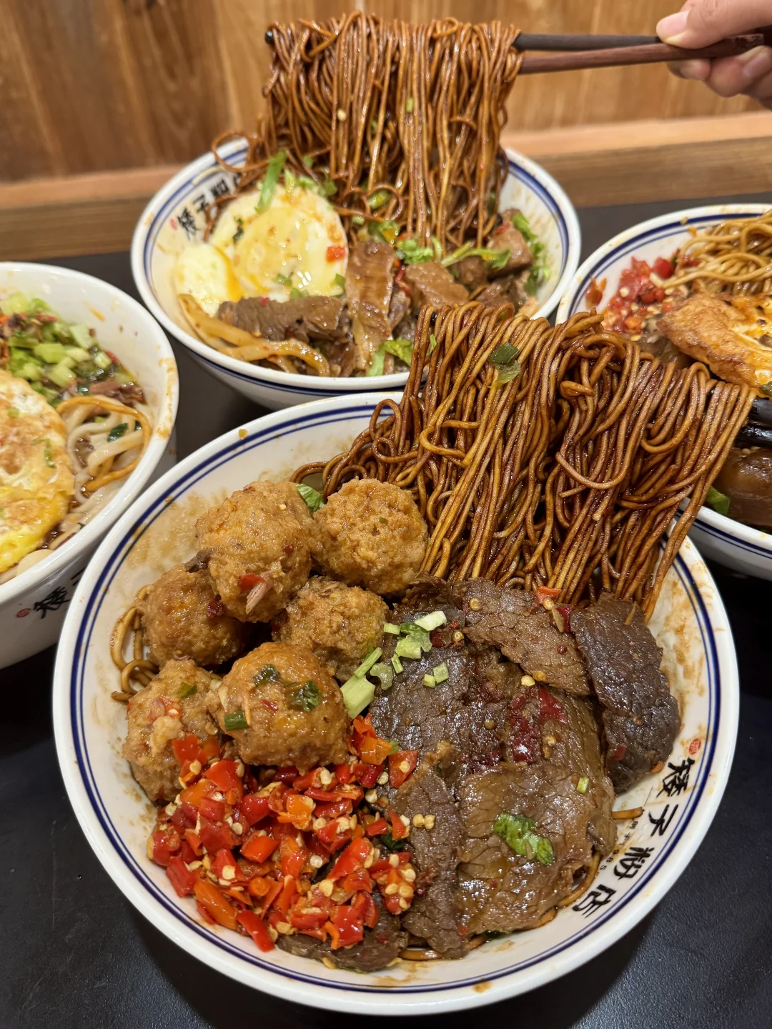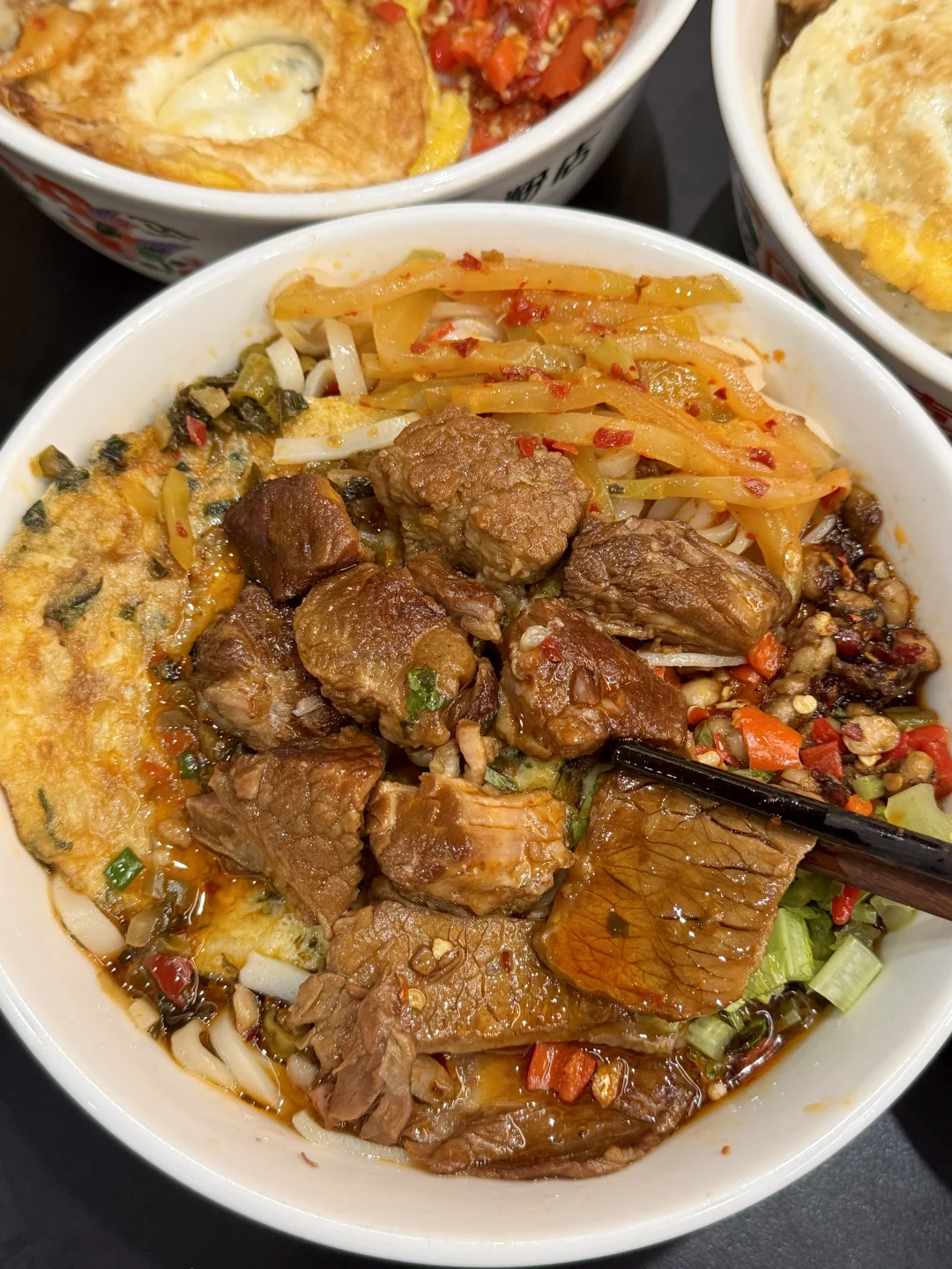 牛肉干拌面、肉丸猪脚粉、酱汁排骨!码子满满的,连汤都不想放过!!! 长郡中学旁边、本地人从小吃到大的老字号了! 喜欢老长沙口味滴真的要去试试啊啊,不会失望… 📍在南门口地铁1号口,学院街巷子里:矮子粉店!