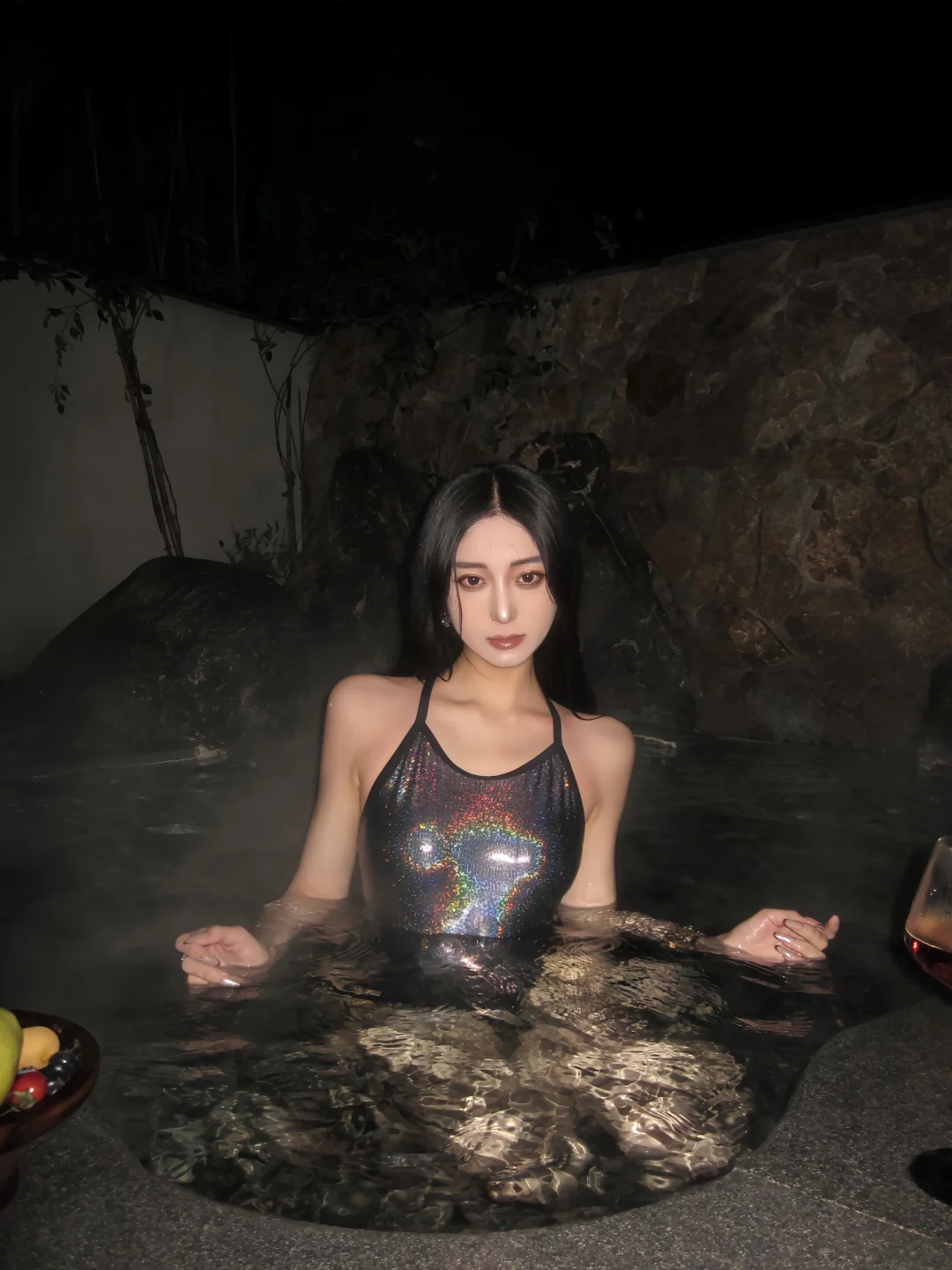 在深冬的夜雨天泡温泉是种奇妙的体验