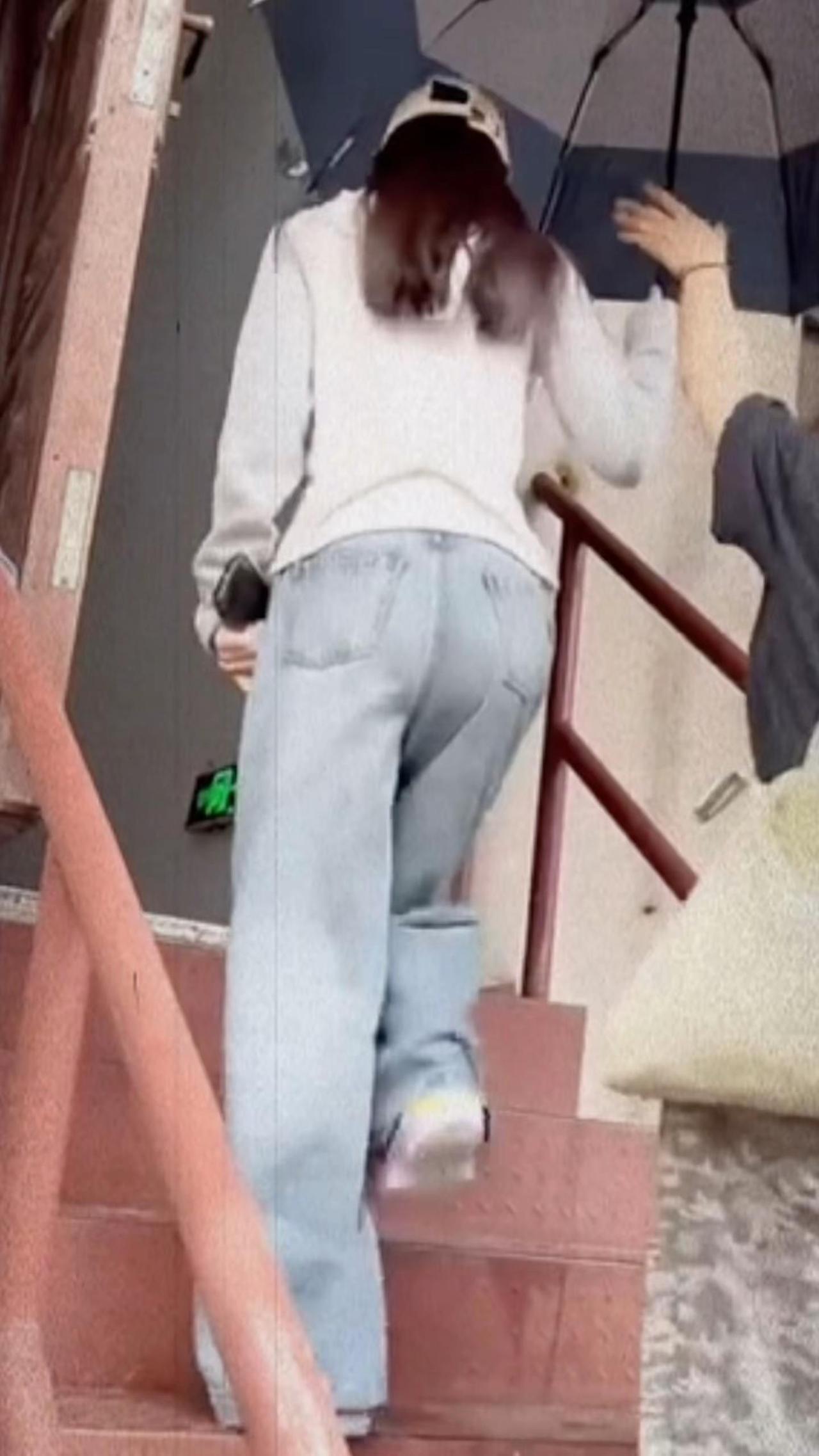 宋轶爬楼梯帮您整理好了,老铁好多裤子啊!宋轶牛仔裤蜜桃臀背影杀