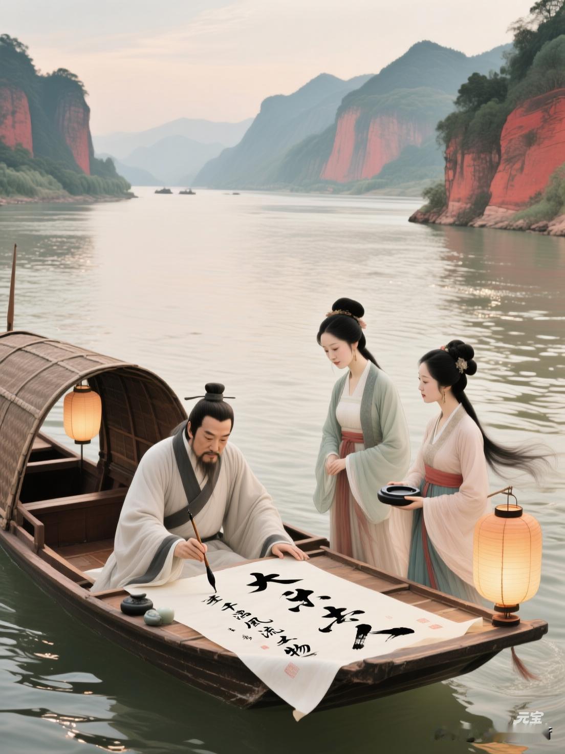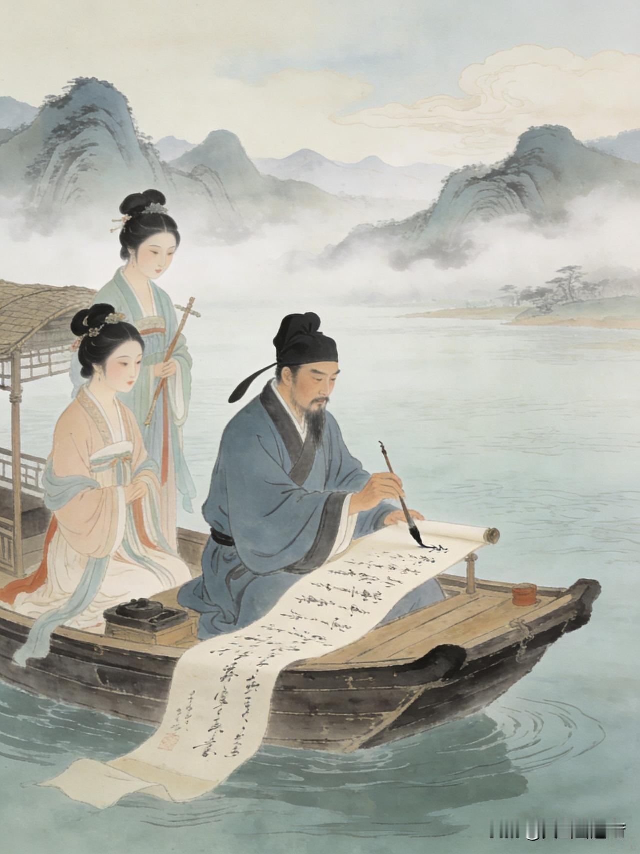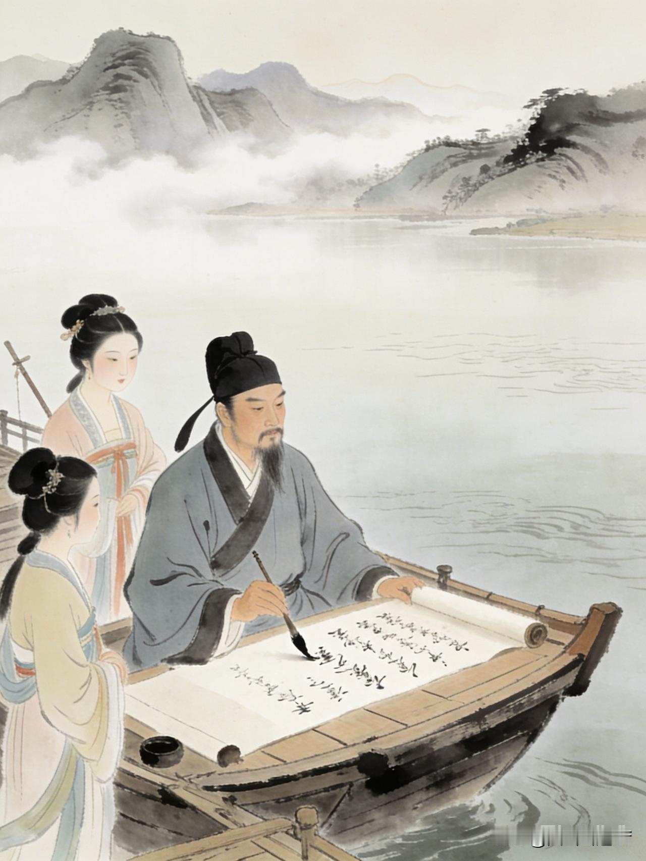 李白望庐山瀑布,杜甫茅屋被秋风所破图