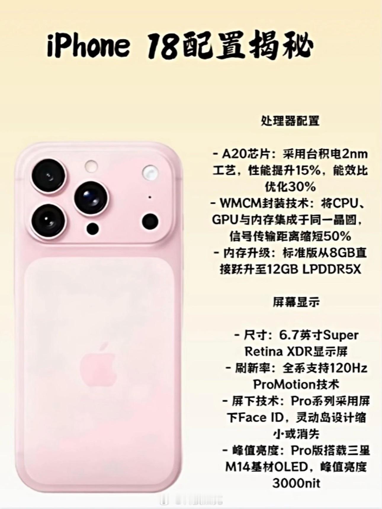 iPhone18标准版或明年发布这应该是苹果第一次把新机分开两次发。现在手机市场变化快,苹果大概觉得一年一次更新有点跟不上节奏,也想多保持点热度吧